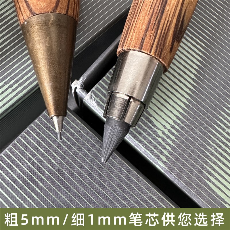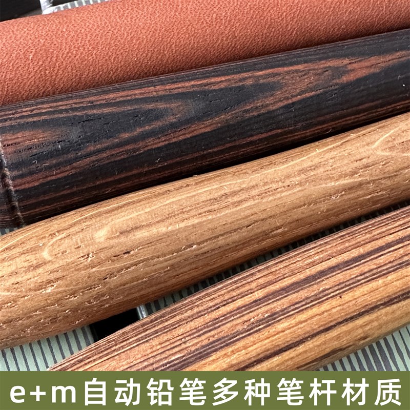 德国e+m古典原木工程笔/皮革金属按压式粗/T细自动铅笔 单支