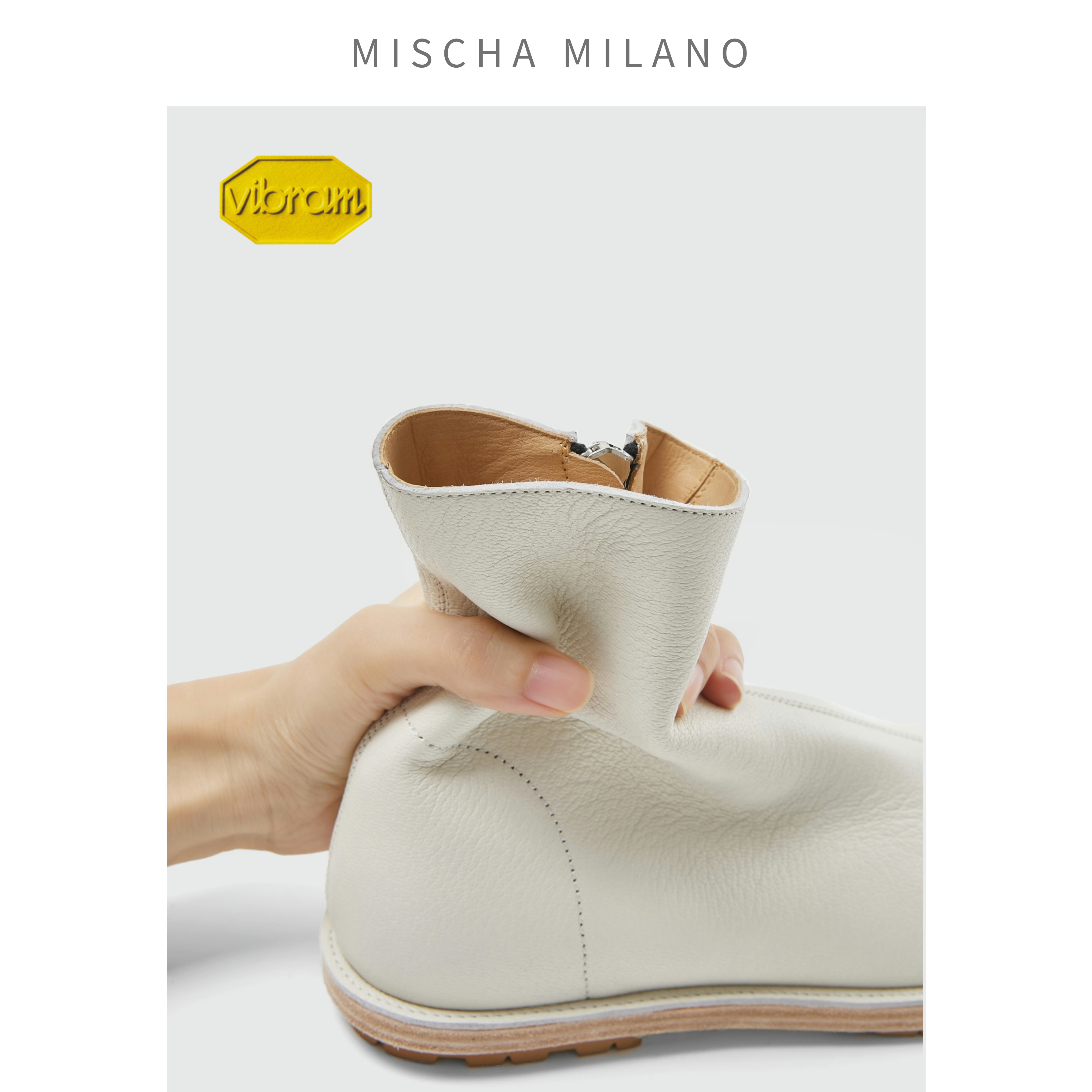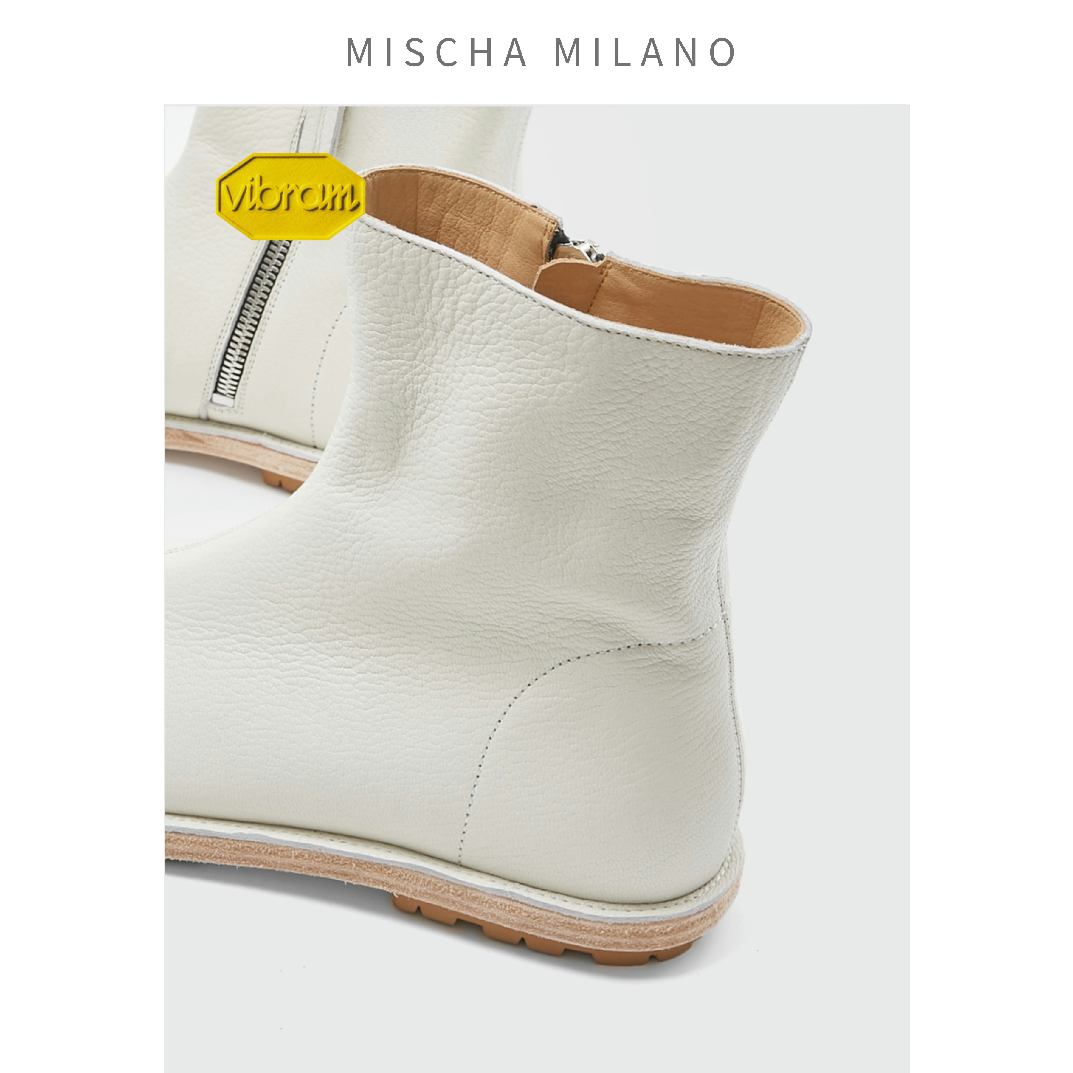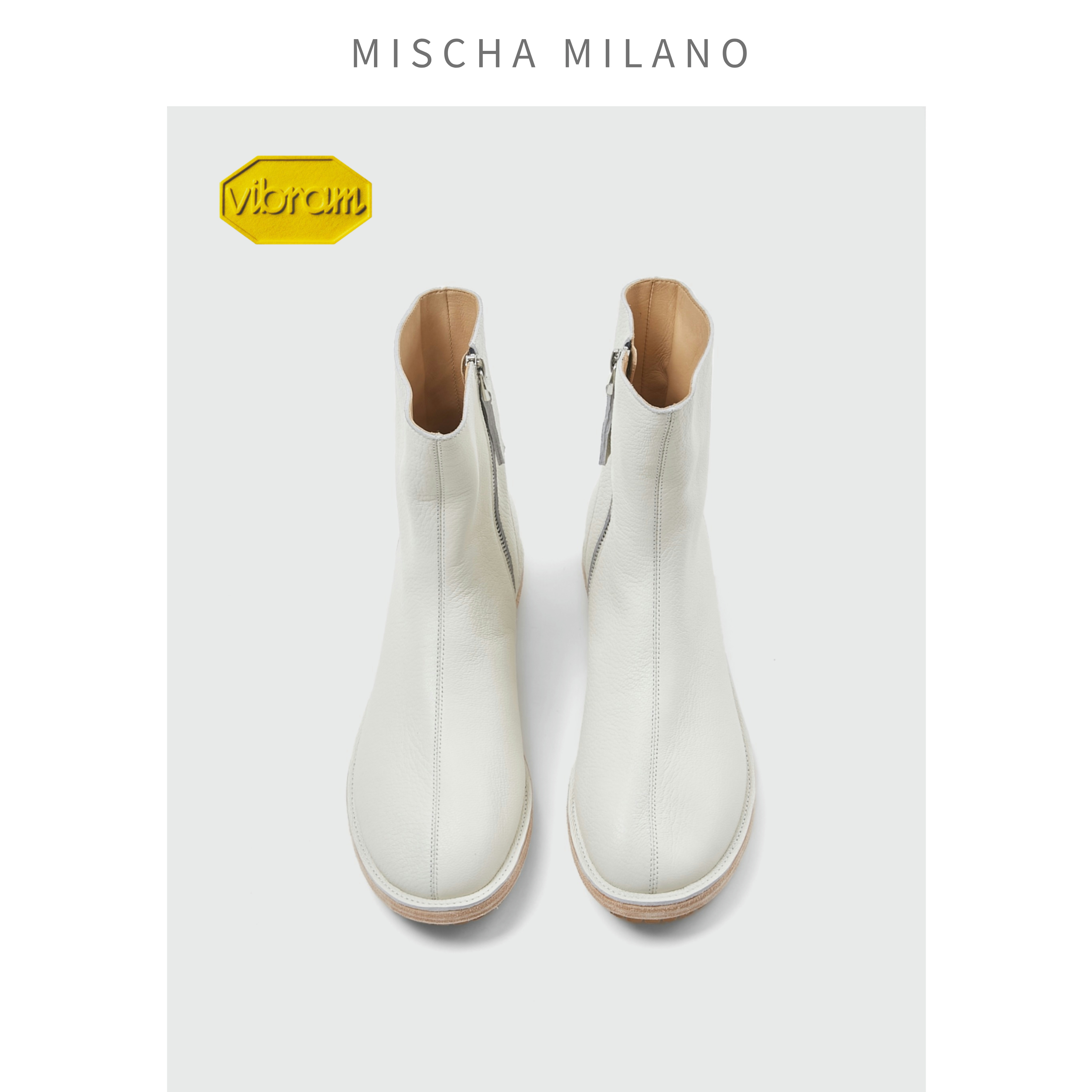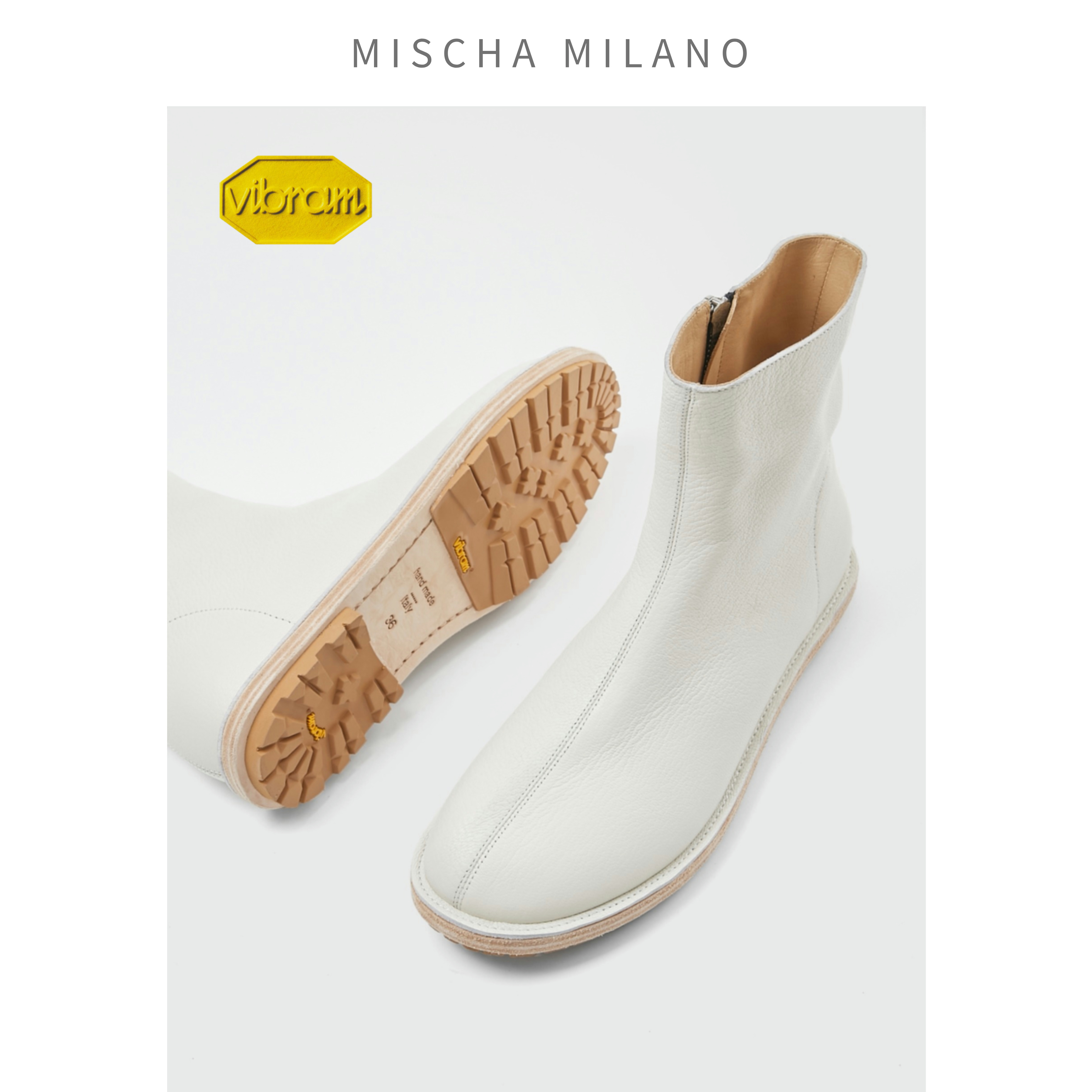 意大利mischa&vibram 白色鹿皮短靴女 24年新款 英伦风马丁靴短筒