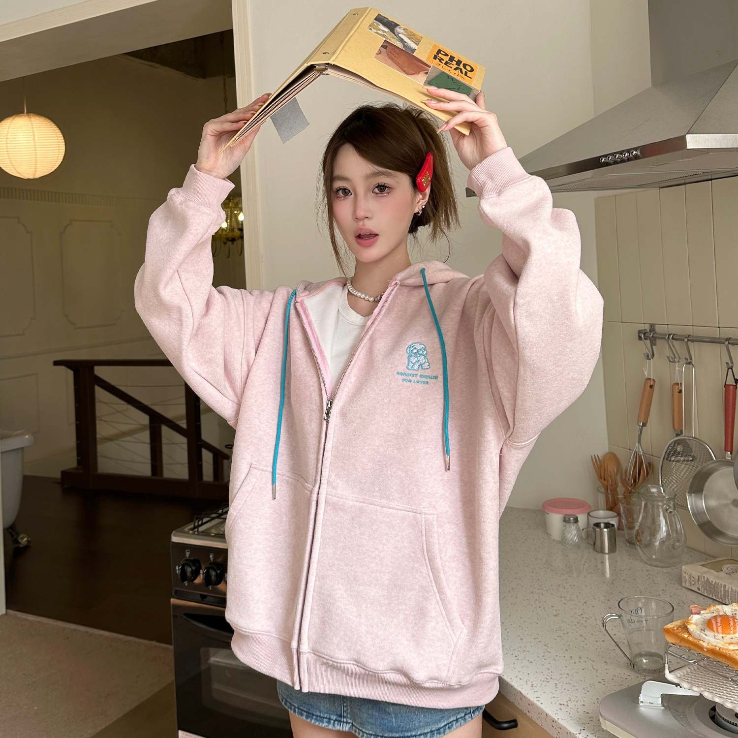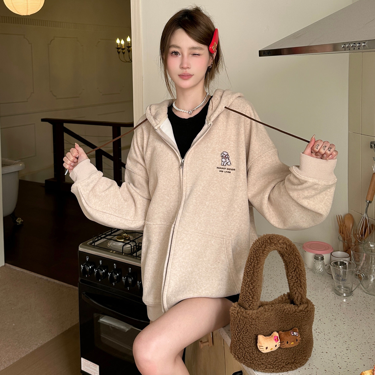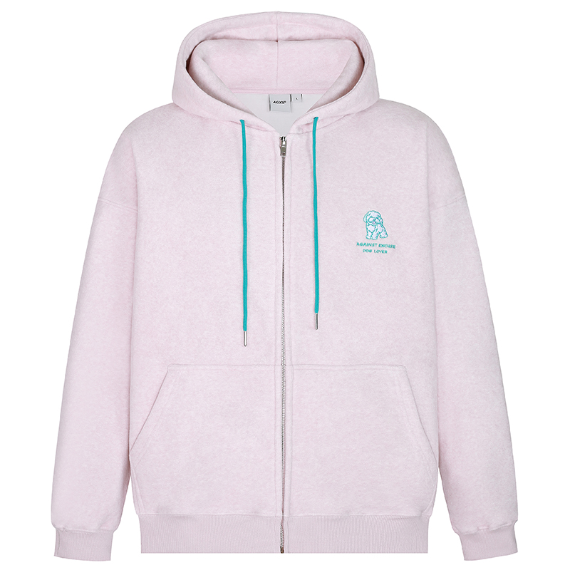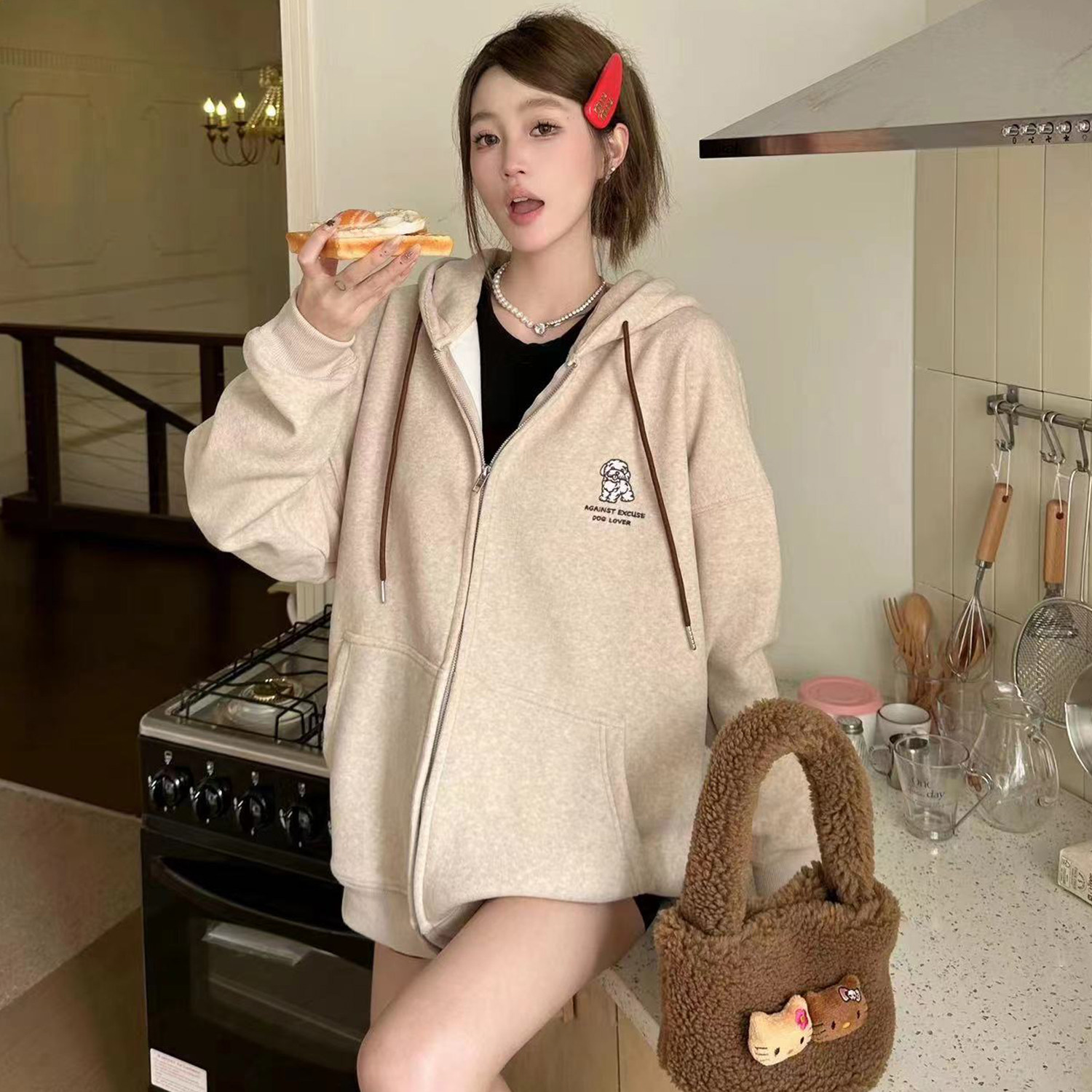 喜士潮社AGXS春秋小狗刺绣慵懒风拉链卫衣情侣开衫外套