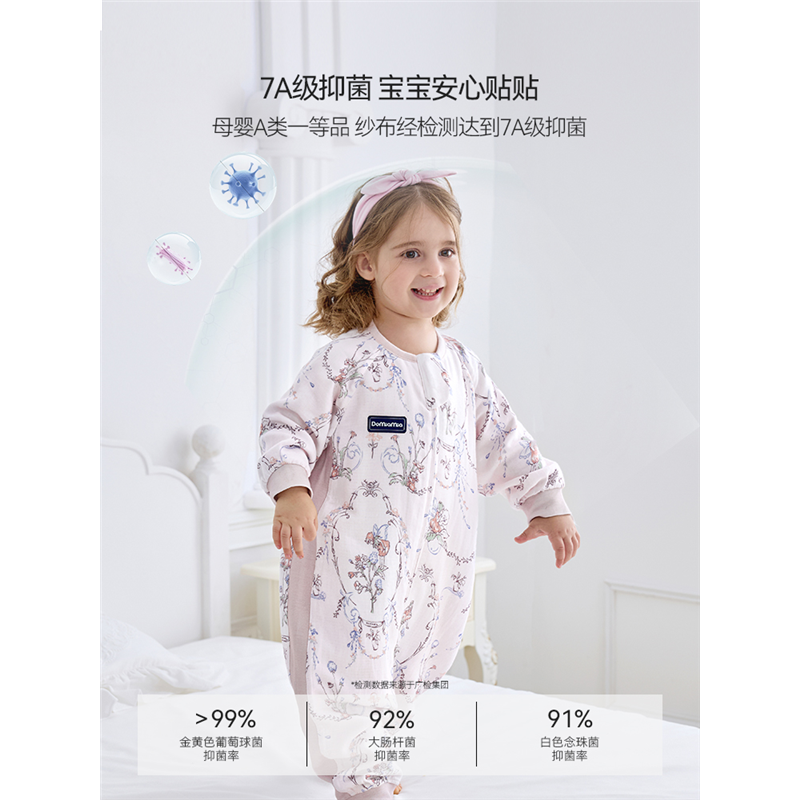 Domiamia婴儿睡袋竹棉纱布春秋款宝宝夏季儿童分腿四季通用防踢被