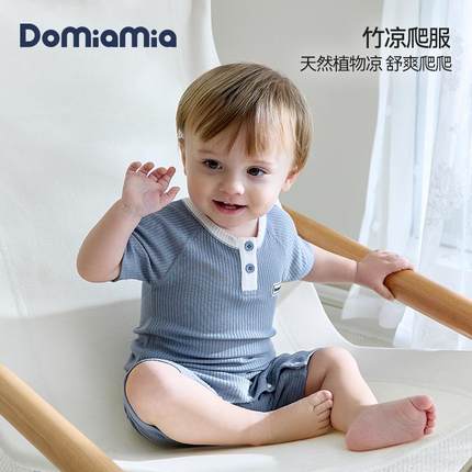 Domiamia宝宝短袖爬服新生儿衣服春夏季竹纤维凉感婴儿纯色连体衣
