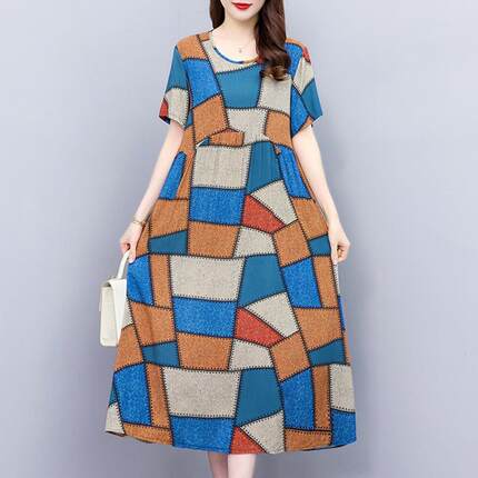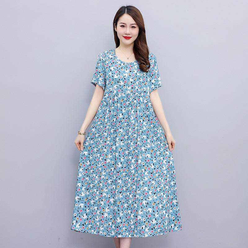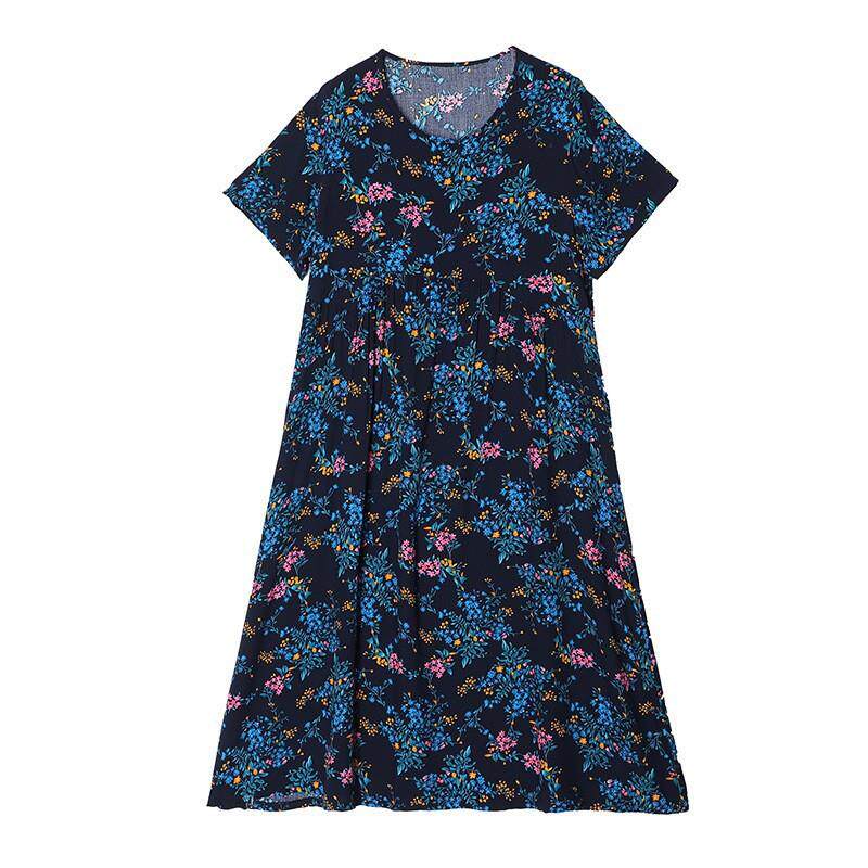 印花人造棉小时尚气质穿长裙宽松mm胖大码连衣裙棉绸夏季可外清新