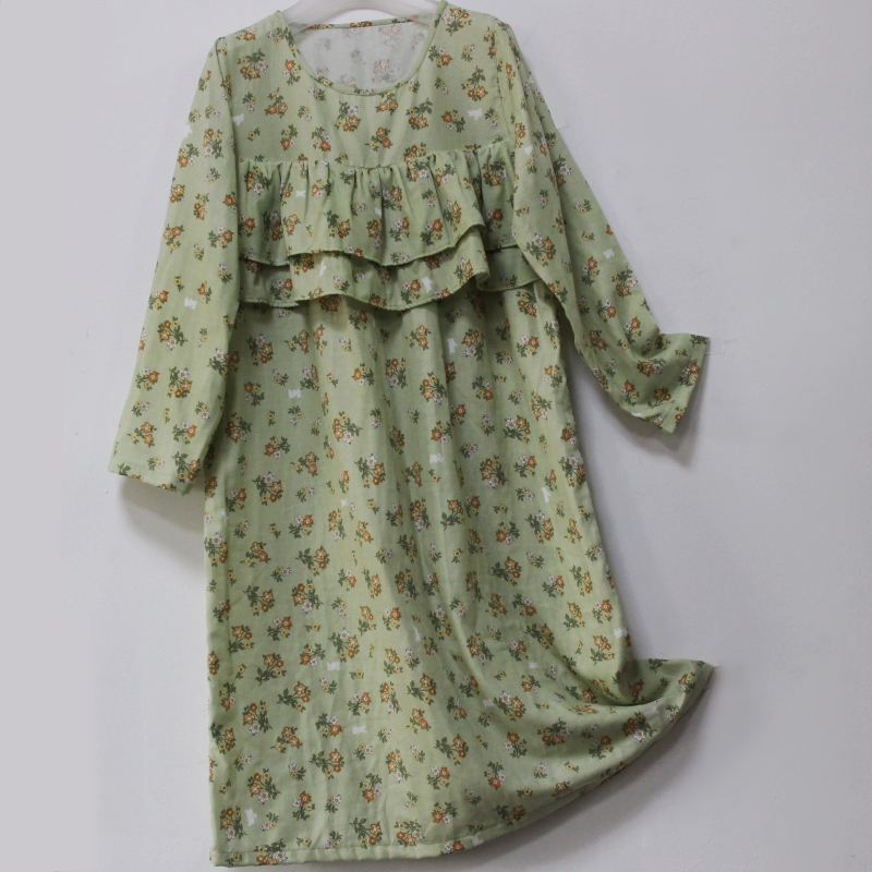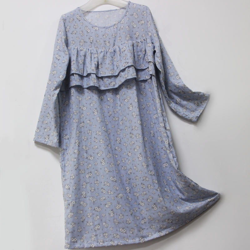全棉纯棉纱睡裙防凸点荷叶边睡裙