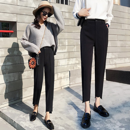 西装裤女九分夏季黑色西裤宽松薄裤子高腰显瘦百搭直筒烟管裤薄款