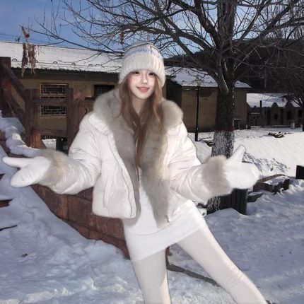 大毛领冬季新款短款羽绒棉服女宽松加厚小个子韩系棉袄面包服外套
