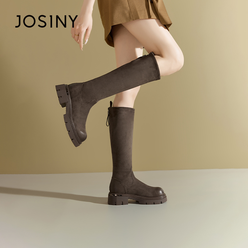 卓诗尼2025秋冬骑士靴厚底百搭高筒瘦瘦靴配裙子粗跟增高长靴