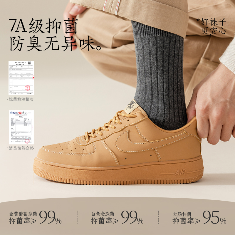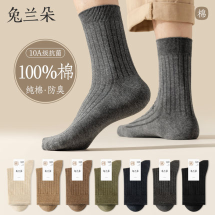 袜子男长袜2025秋冬新款纯棉防臭7A抗菌抗起球吸汗黑色中筒袜男士