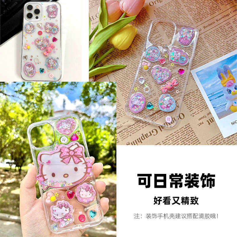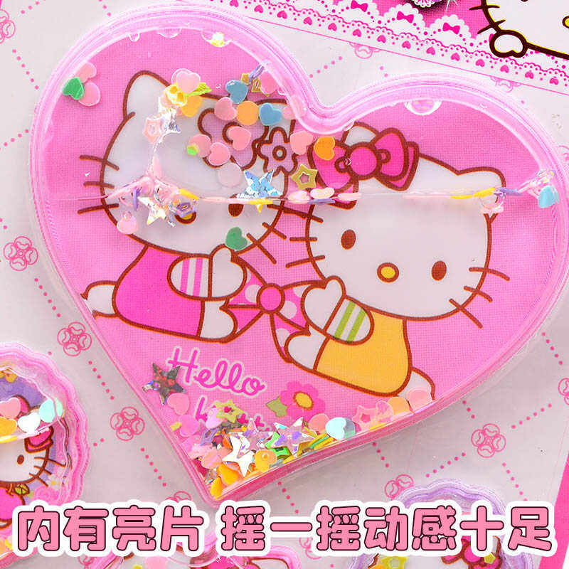 儿童女孩宝宝卡通贴纸3D立体带水摇摇手机壳装饰流沙水晶贴画