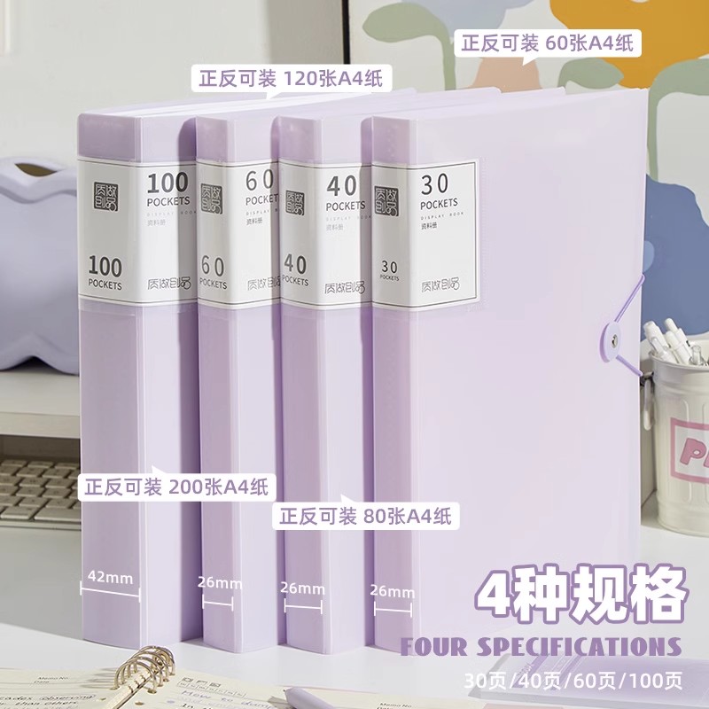 文件夹透明插页资料册a4资料夹100页小学生专用大容量多功能试卷收纳袋档案整理办公用品合同夹乐谱夹开学