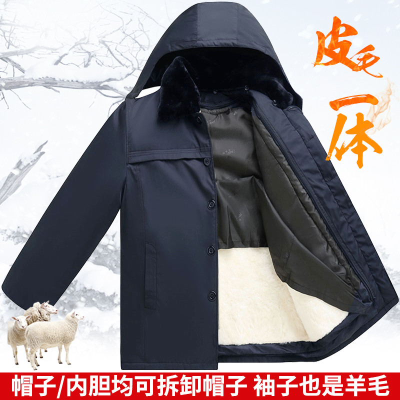 冬季中老年皮毛一体羊毛棉袄男羊皮袄外套加厚东北棉衣棉服尼克服