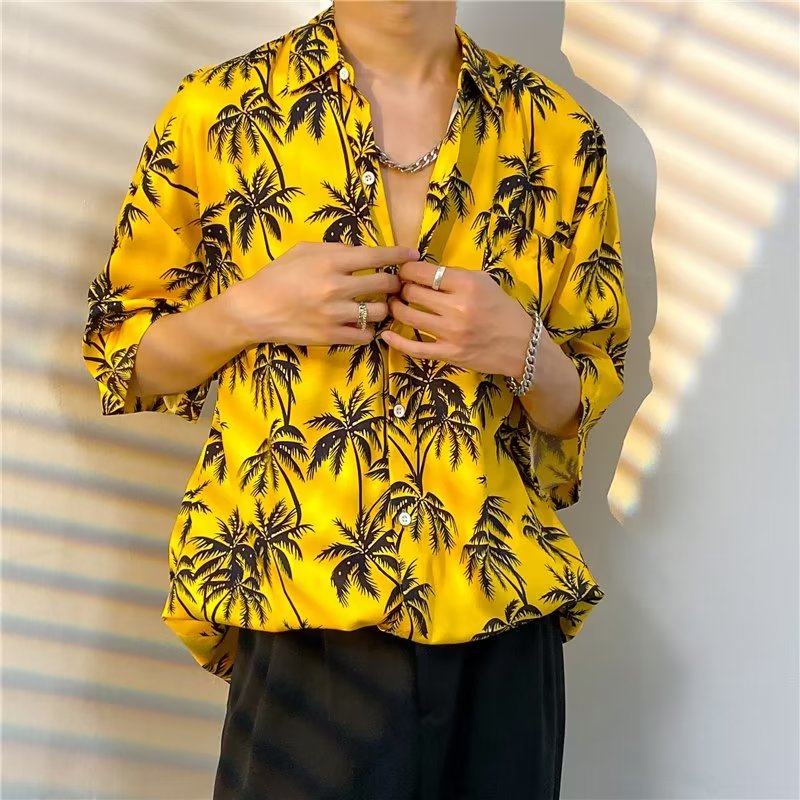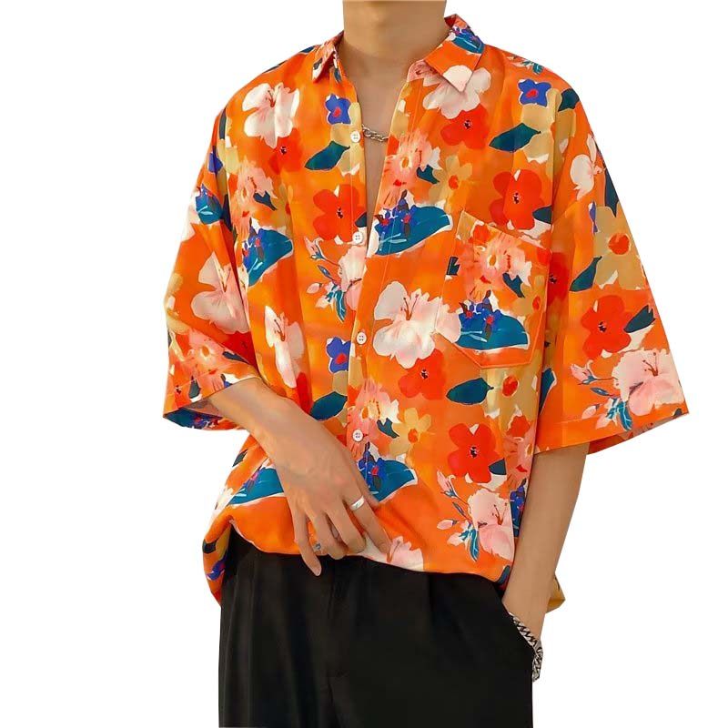港风复古vintage花衬衫短袖三亚夏威夷风设计感痞帅宽松衬衣男女