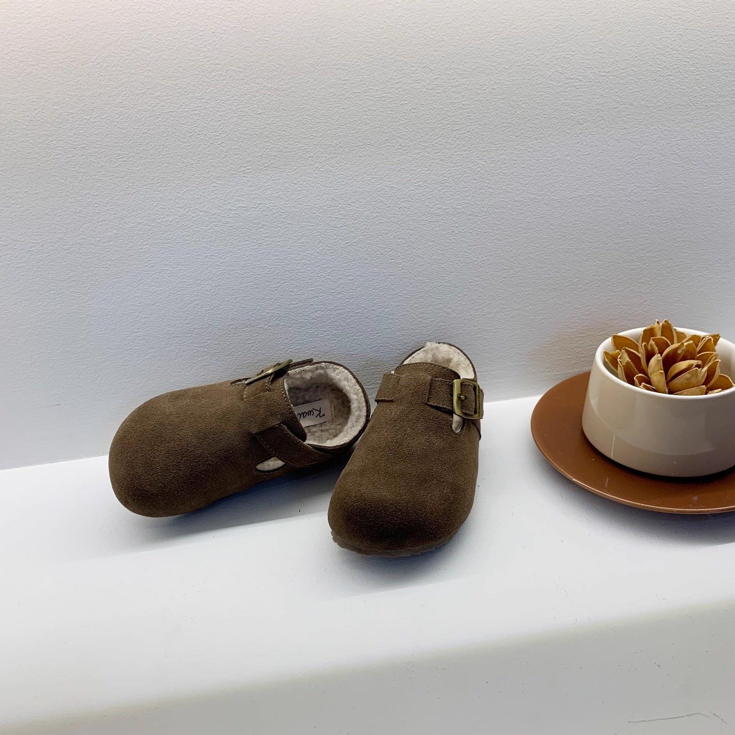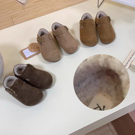 冬季新款儿童加绒小皮鞋男童软底真皮勃肯鞋复古百搭女童豆豆鞋潮
