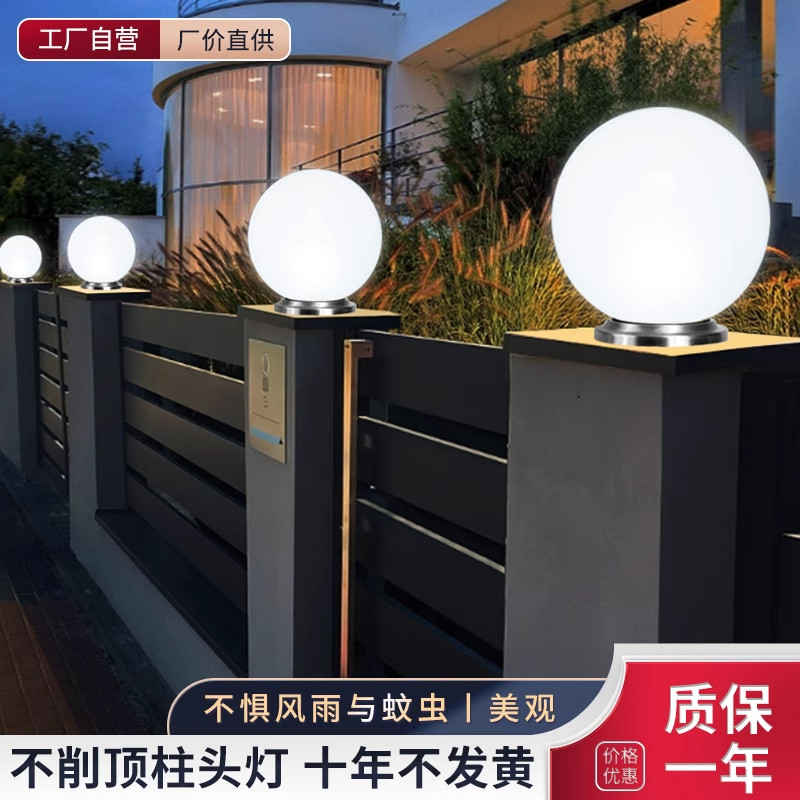 2025年新型接电户外柱头灯圆球形别墅庭院大门口超亮照明柱子灯