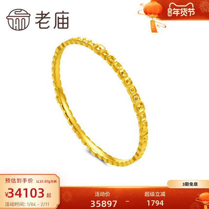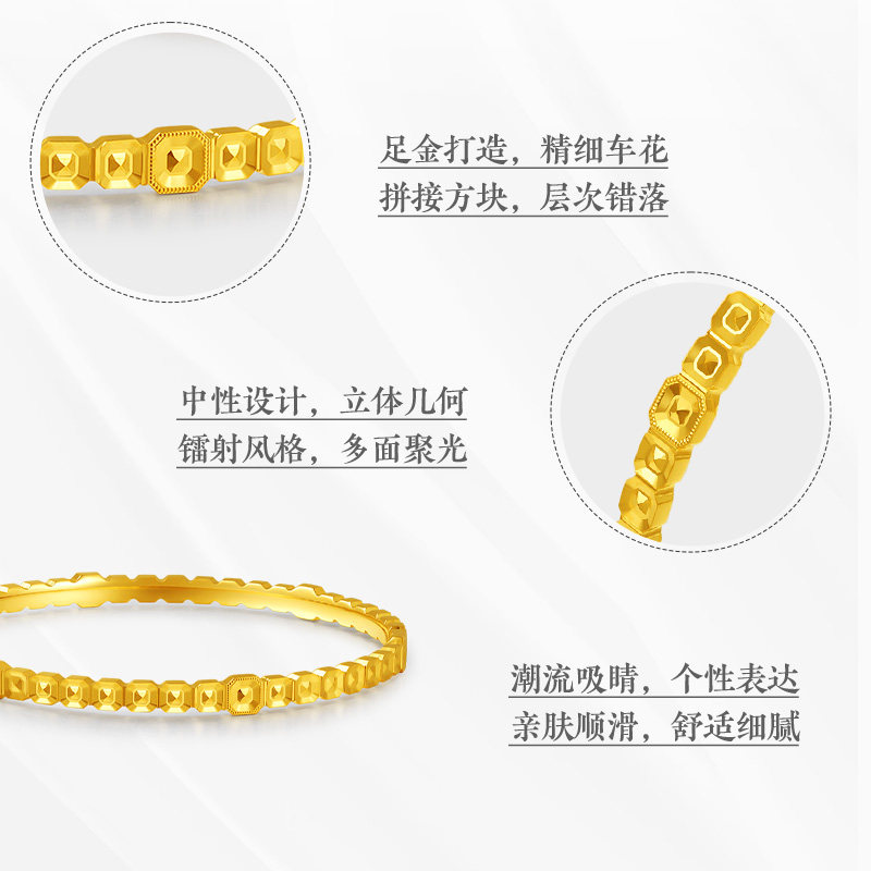 老庙黄金足金999方块镭射固口手镯几何车花马赛克爆闪潮酷