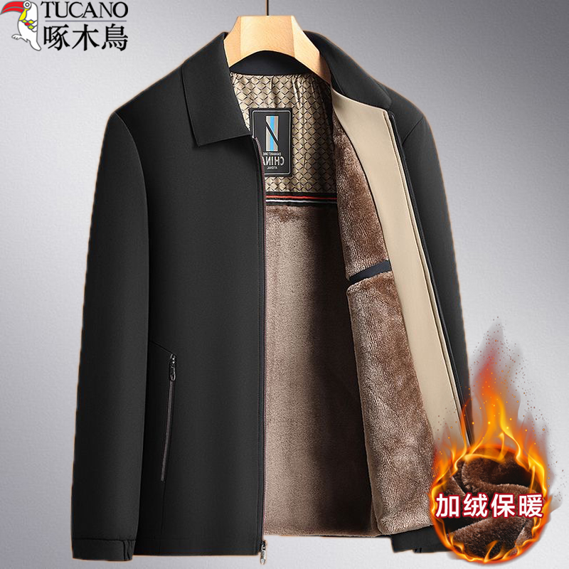 啄木鸟中年男士外套夹克衫加绒加厚款秋冬季中老年人棉衣服爸爸装