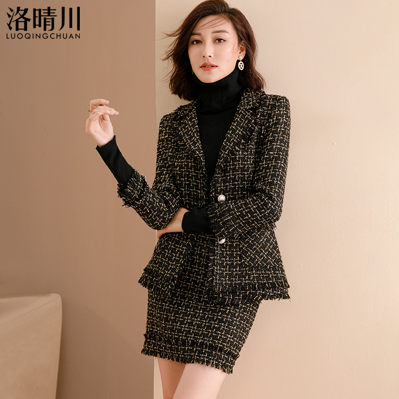 洛晴川2025春季新款时尚套装女高级感气质显瘦西装外套半身裙套装