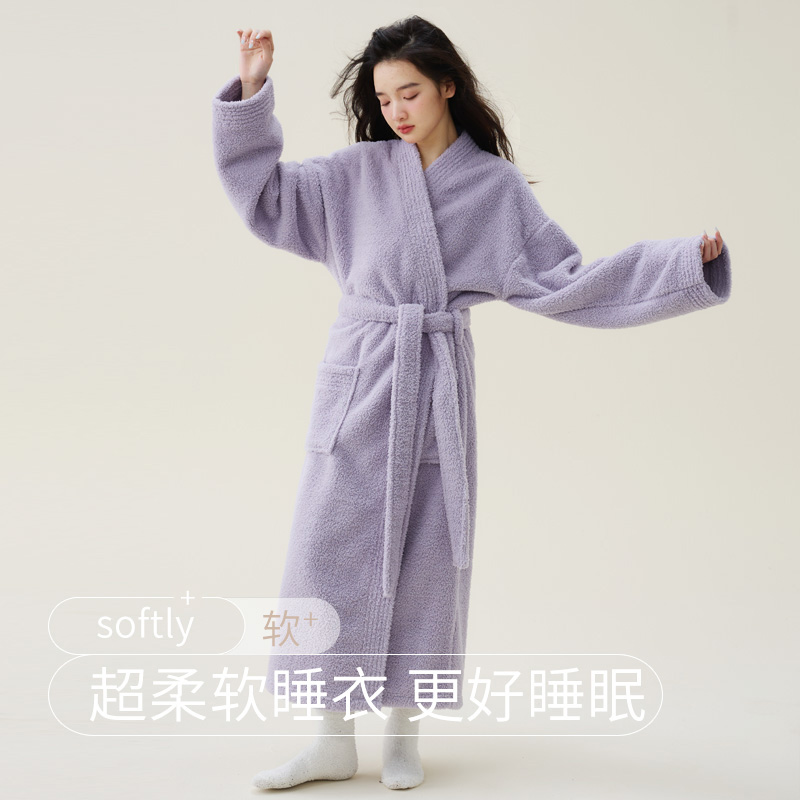 新款睡袍女秋冬季珊瑚绒男士浴袍情侣睡衣套装加长款浴衣加厚冬天