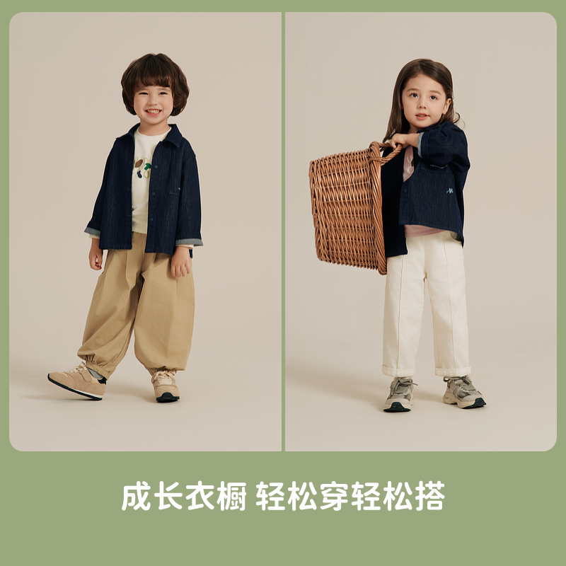 UCNOO与虫儿童外套2025春新款男童衬衫长袖春装牛仔衬衣男女宝宝