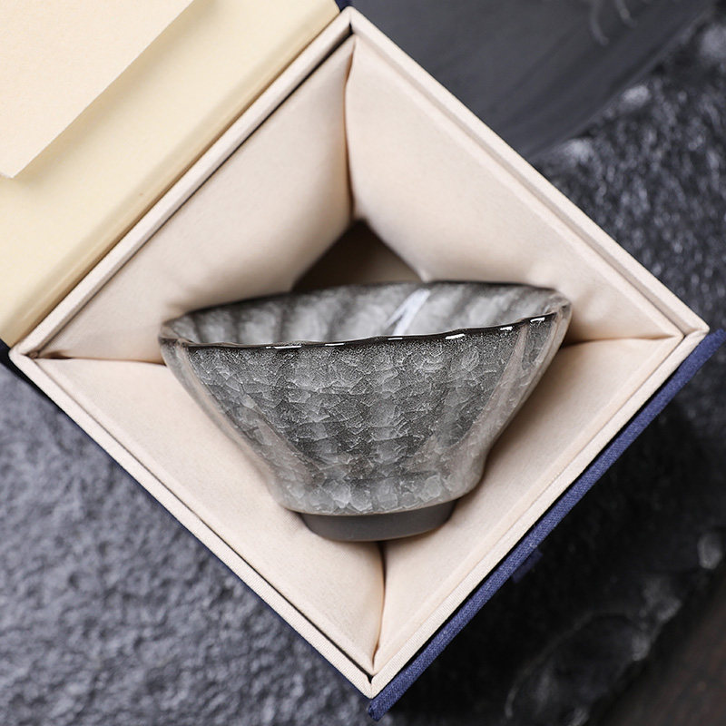 黑冰花主人杯冰裂釉个人专用茶杯