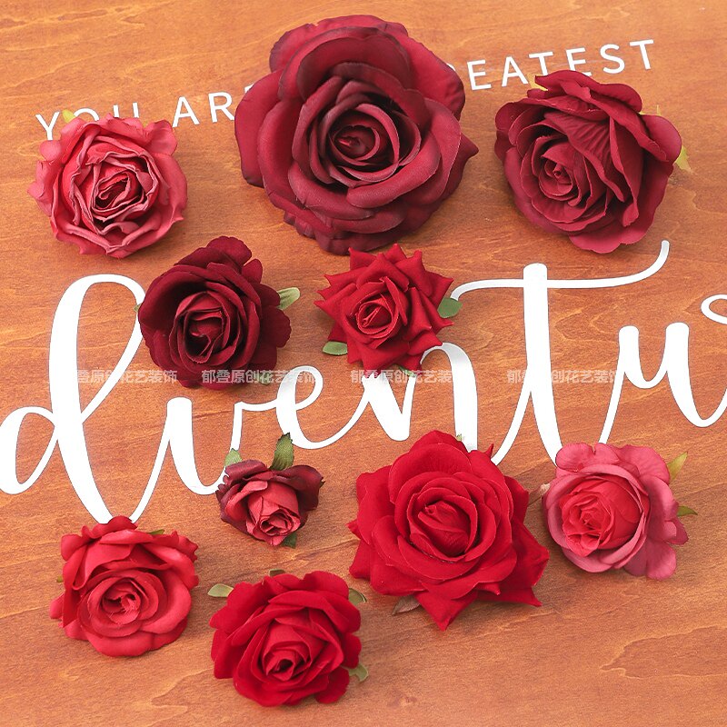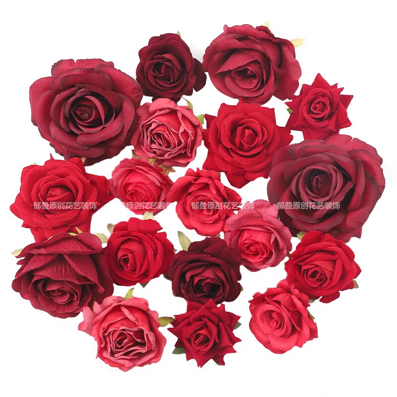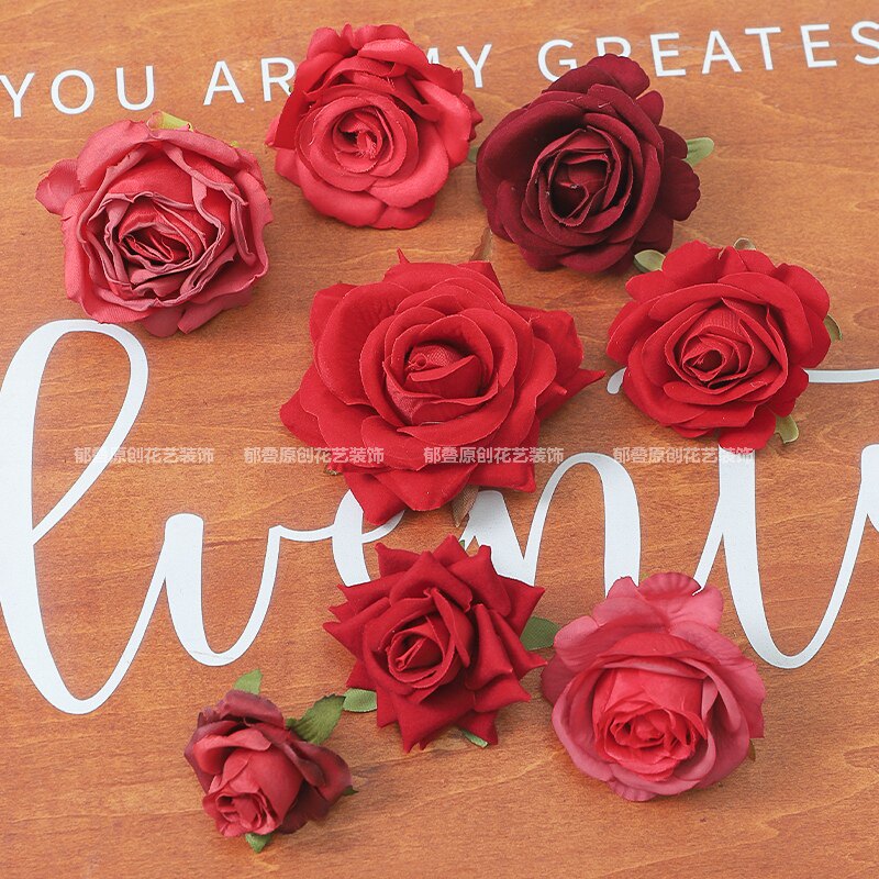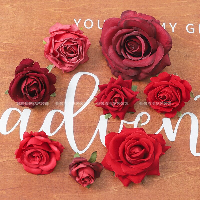 红色玫瑰花朵 绢花假花手工diy花艺家居布景 婚庆花墙装饰 插花