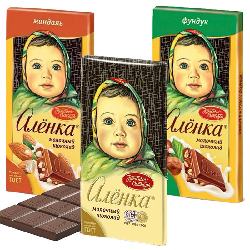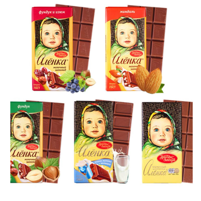 俄罗斯原装进口大头娃娃榛子提子扁桃仁七彩豆牛奶巧克力零食90克