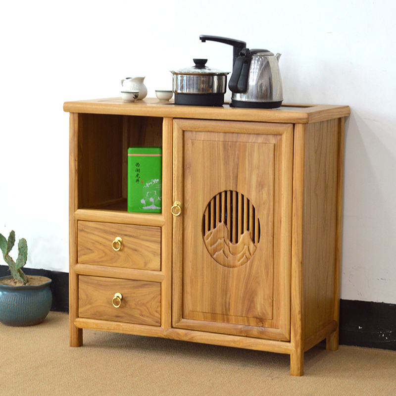 新中式茶水柜简约客厅实木餐边柜榆木移动小茶台多功能置物架矮柜