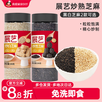 展艺白黑芝麻黑白芝麻罐装烘焙家用商用即食炒熟芝麻官方旗舰店