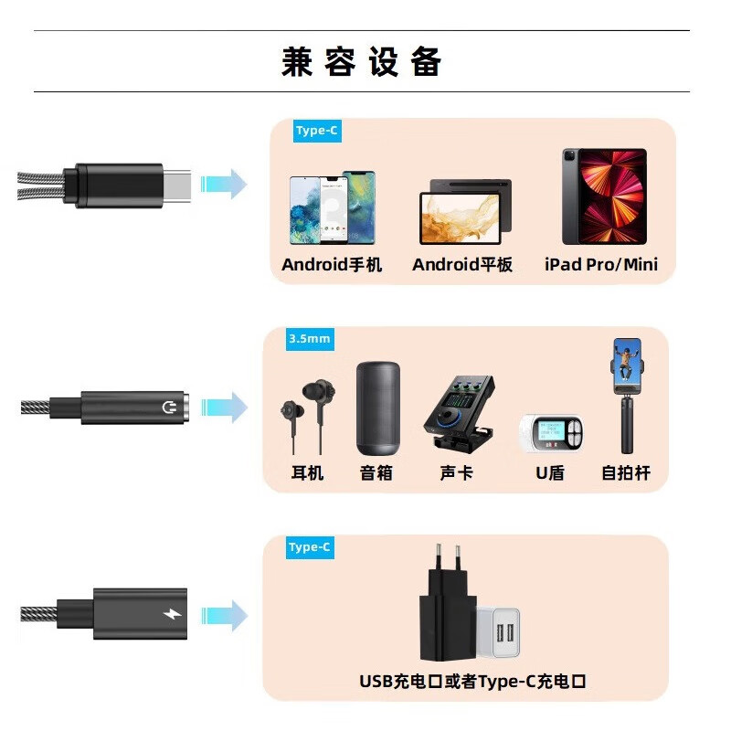 适用漫步者有线耳机转接线3.5mm转type-c连接线手机转换头H230P GM360 GM180 GM380 GM260 H275P H230P音频线
