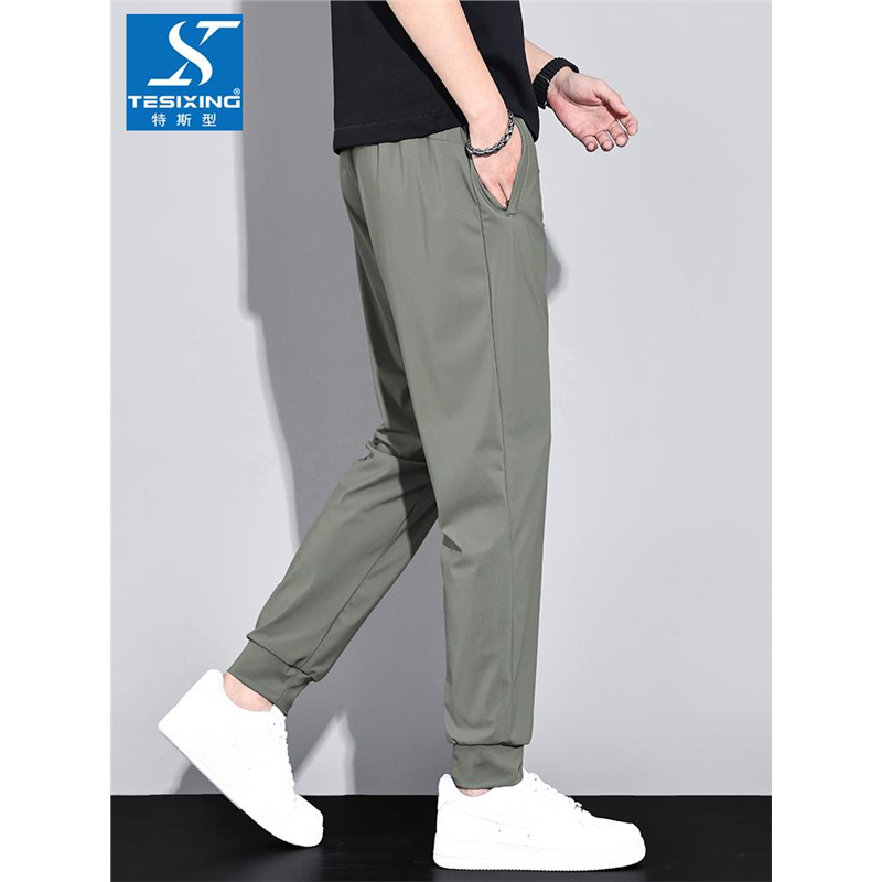 以纯YISHION冰丝卫裤男款夏季宽松束脚男士抽绳休闲裤潮流凉感速