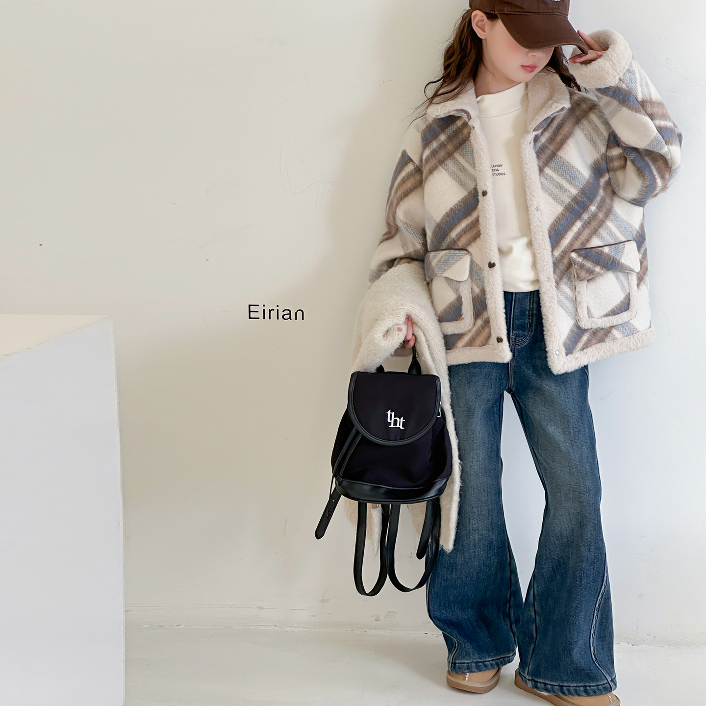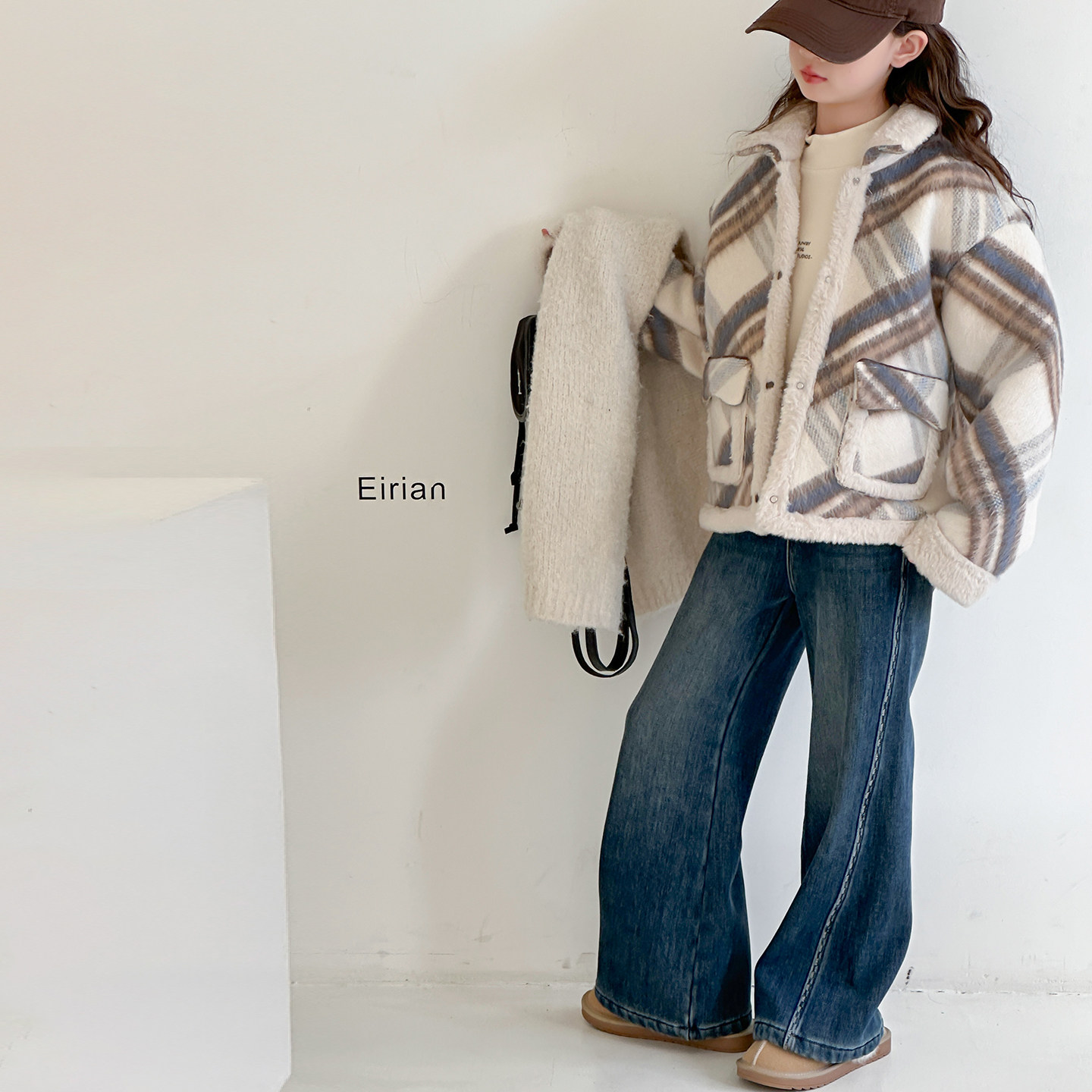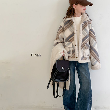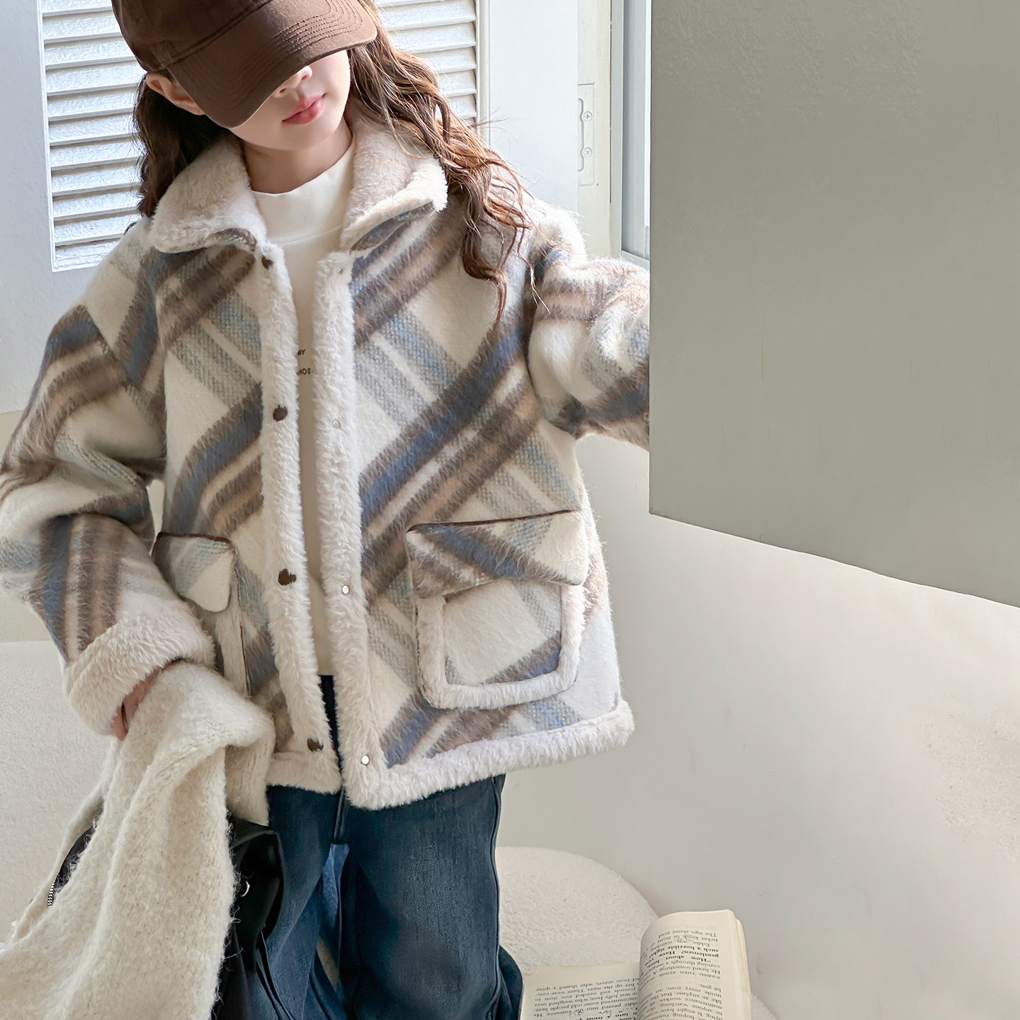 女童皮毛一体外套秋冬装2025新款中大童翻领加绒上衣韩版条纹夹克
