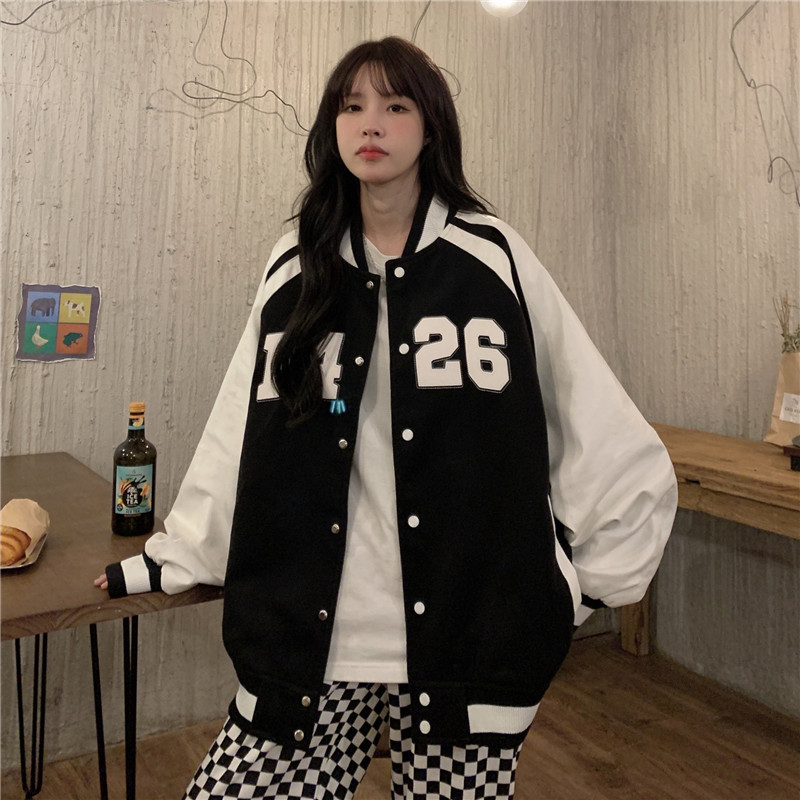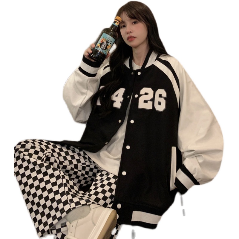 oversize高街外套女春秋宽松潮ins慵懒风bf薄款hiphop运动棒球服