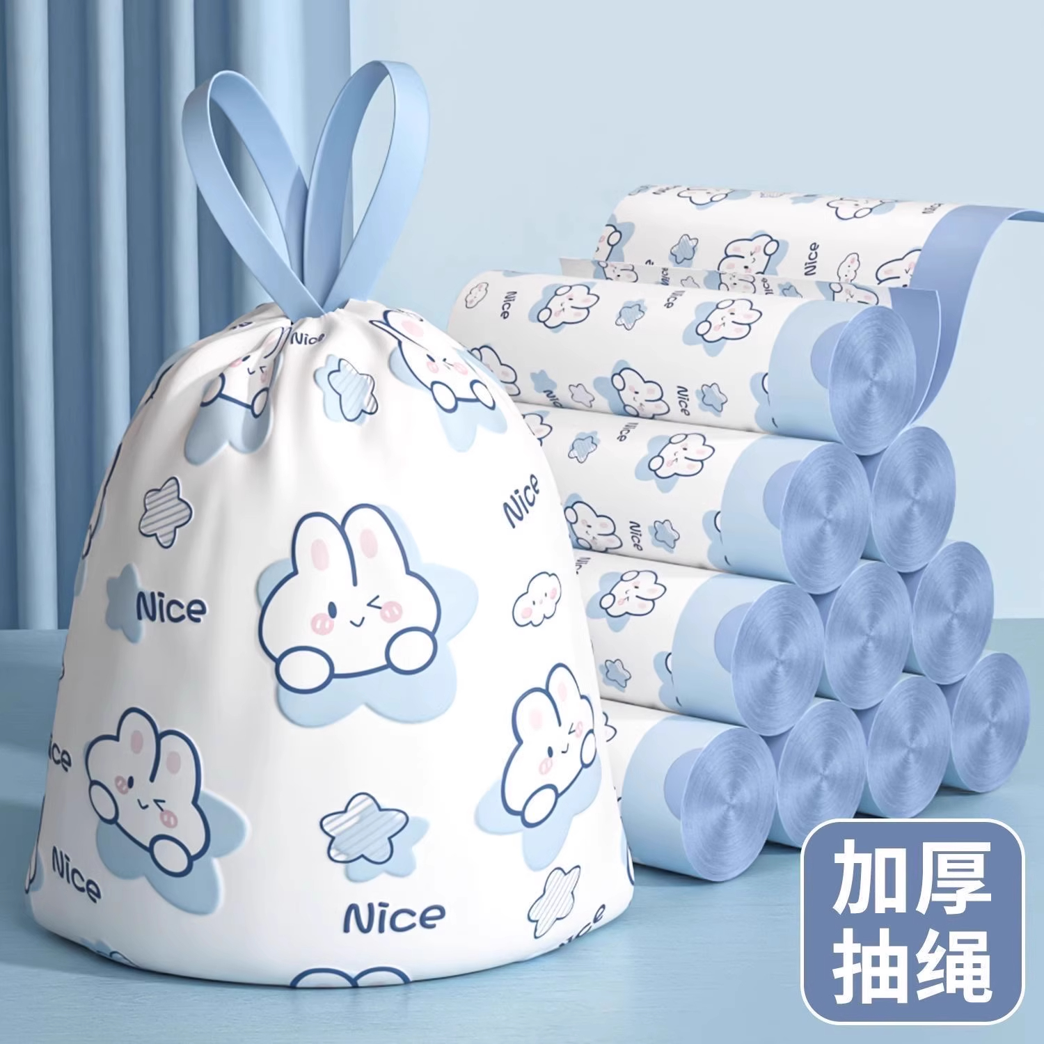 萌趣蓝心兔抽绳款垃圾袋家用加大加厚宿舍适用自动收口大号塑料袋