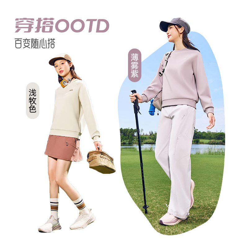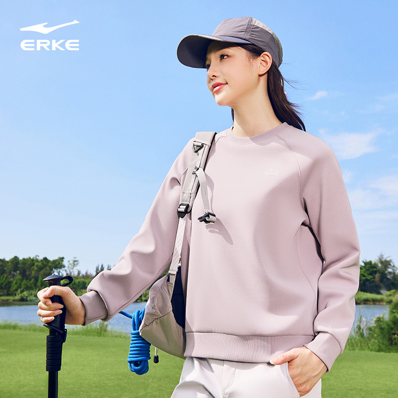鸿星尔克卫衣女2025冬季新款女士圆领抗菌运动休闲套头上衣女装