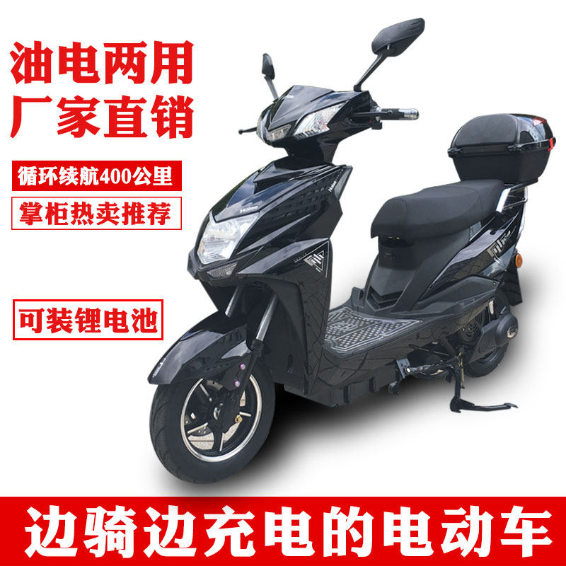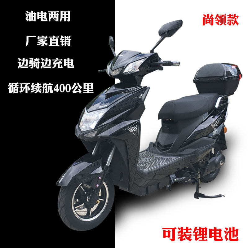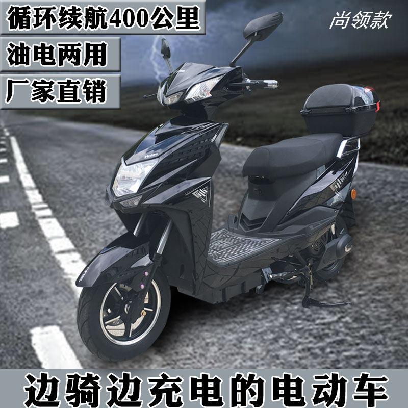 外卖增程式油电两用电瓶车燃油双动力油电混合电动摩托车两轮成人