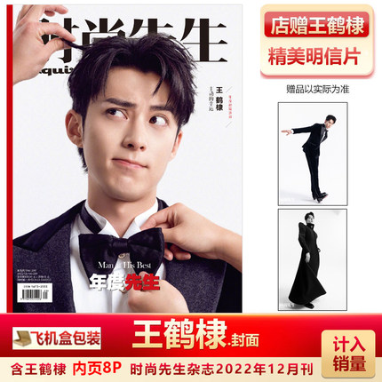 现货 时尚先生12月 王鹤棣封面+店赠王鹤棣明信片 计入销量 时尚先生杂志2022年12月新刊王鹤棣封面 年度先生