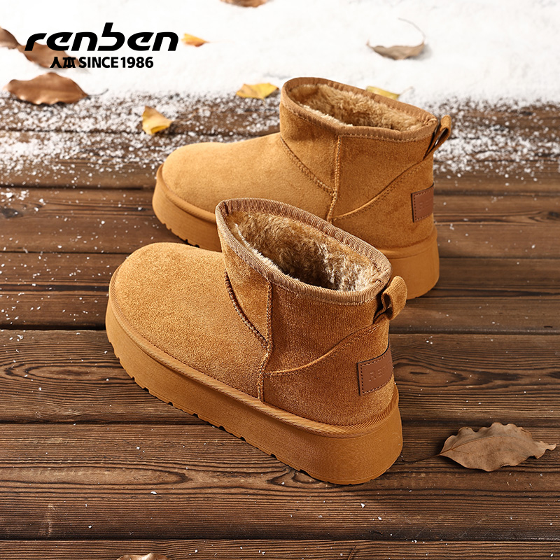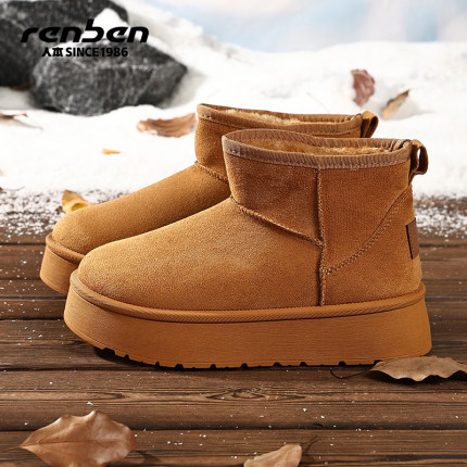 人本厚底雪地靴女外穿东北棉鞋
