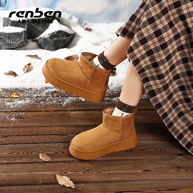 人本加绒加厚雪地靴女2025冬季新款保暖户外外穿防水防滑东北棉鞋