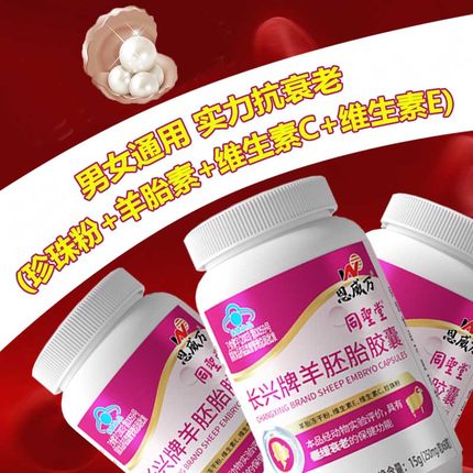 长兴牌羊胚胎胶囊180粒内服珍珠粉羊胎盘羊胎素维生素CE组合男女男女成人孕妇中老年抗老精华延缓早衰更年期调理口服抗衰老保健品