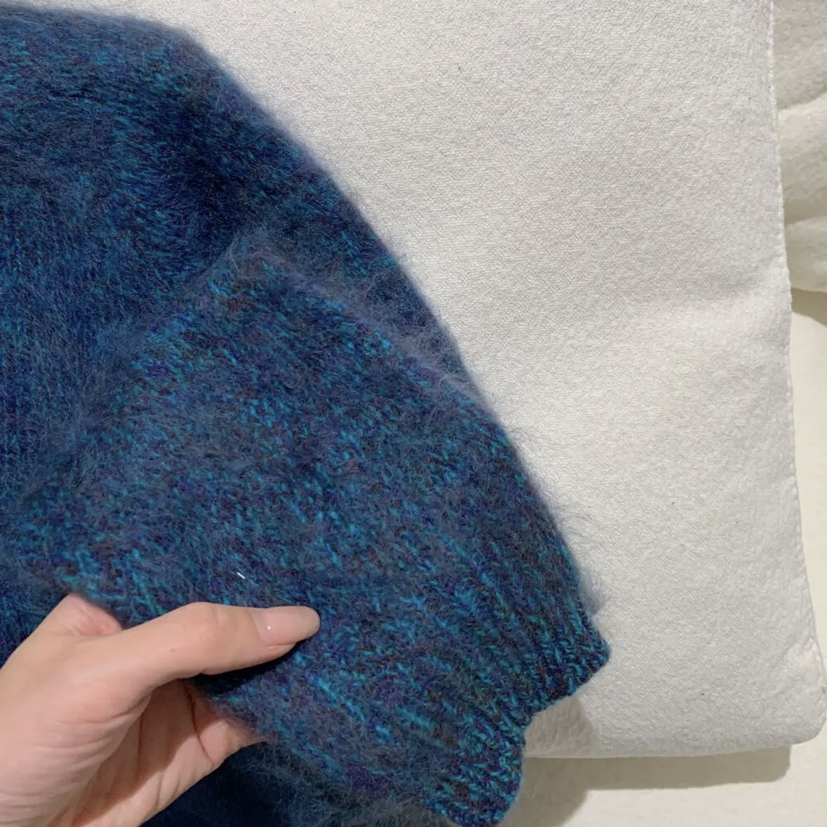 高端拉绒毛衣女秋冬新款蓝眼泪色保暖套头花纱上衣打底羊绒针织衫