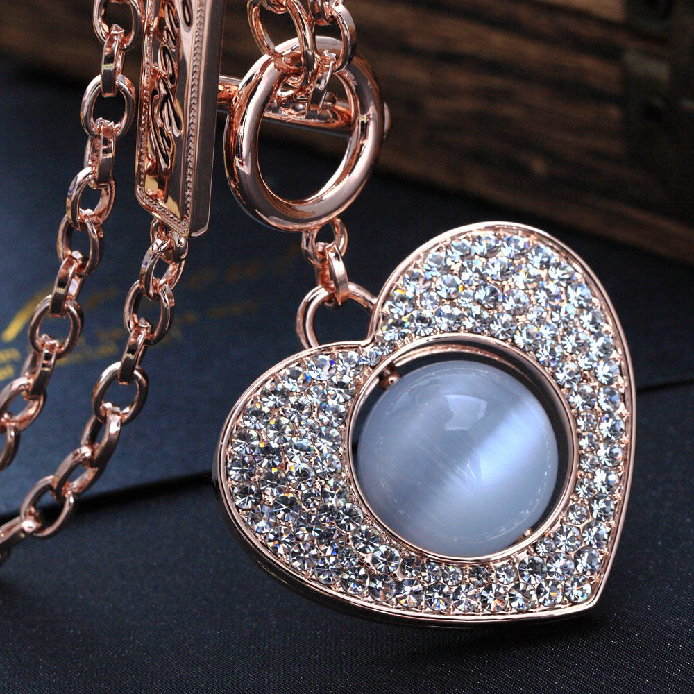 生日礼物 仿猫眼石首饰品长款 韩版时尚长款项链心有灵犀毛衣链