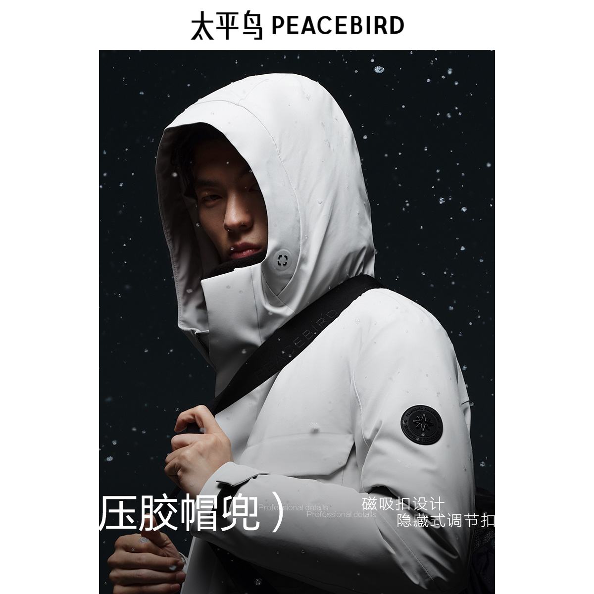 太平鸟男装 户外羽绒服男冬季黑色工装口袋防寒服连帽保暖外套男