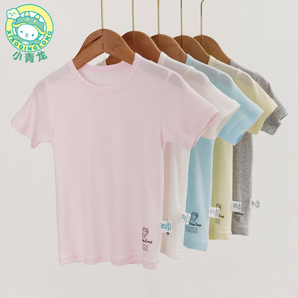 小青龙短袖衫纯棉男女童打底纯色汗衫全棉罗纹宝宝糖果色T恤上衣