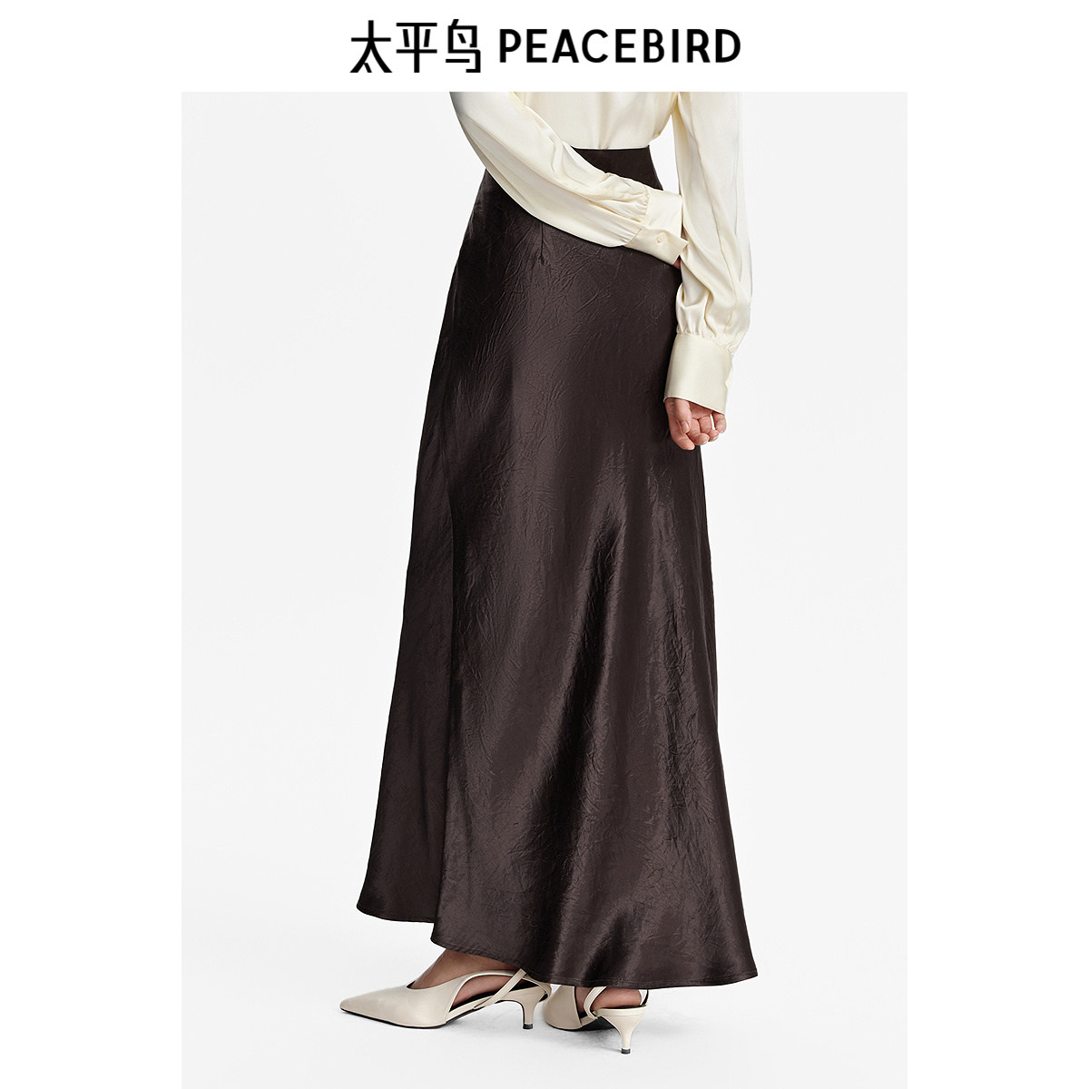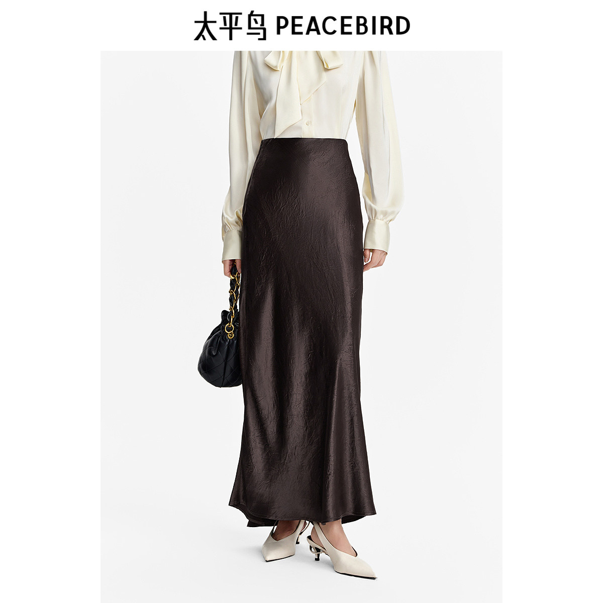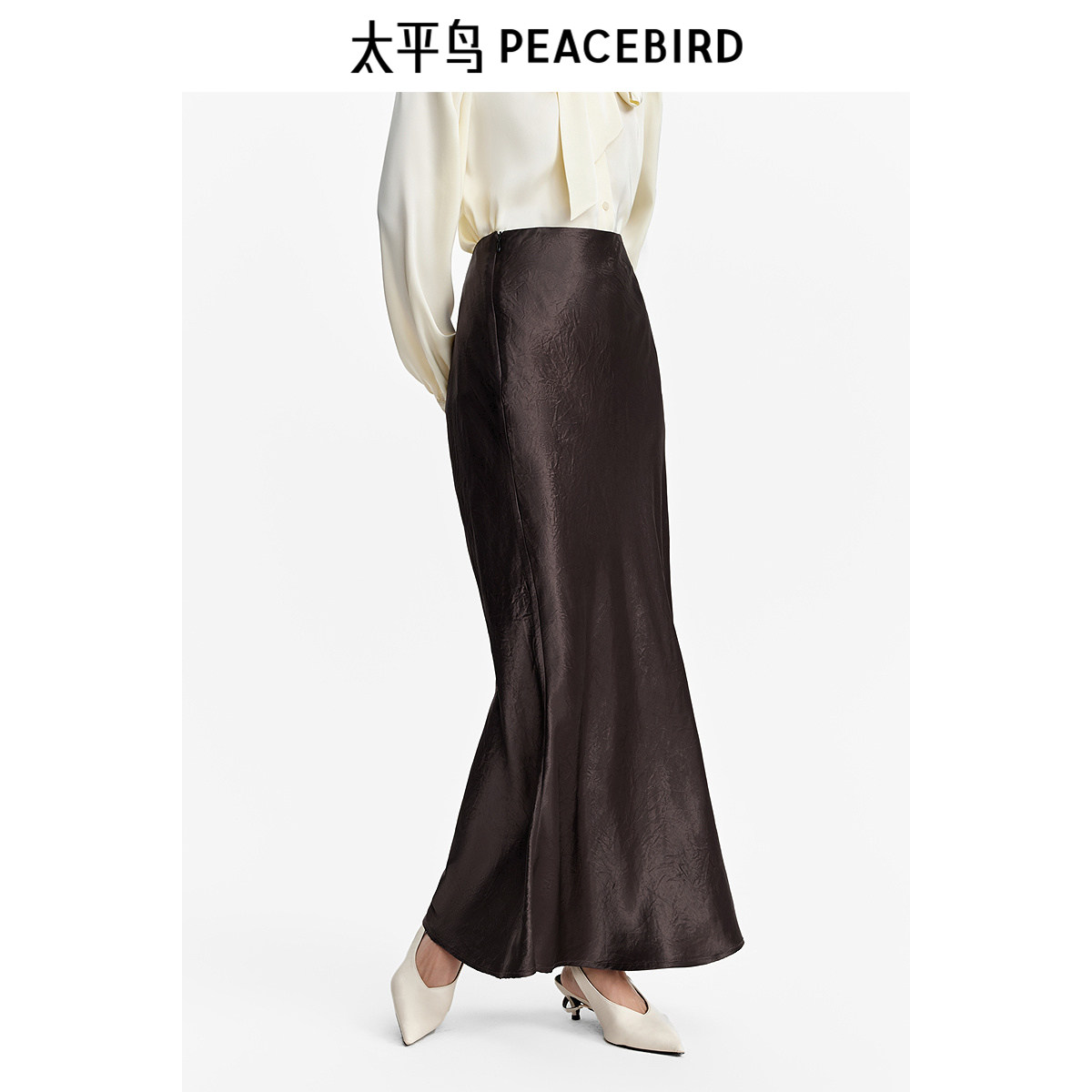 太平鸟女装醋酸鱼尾长裙2025秋季新款高级缎面气质包臀半身裙裙子