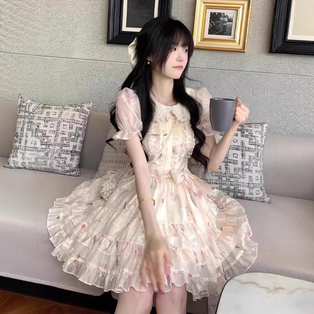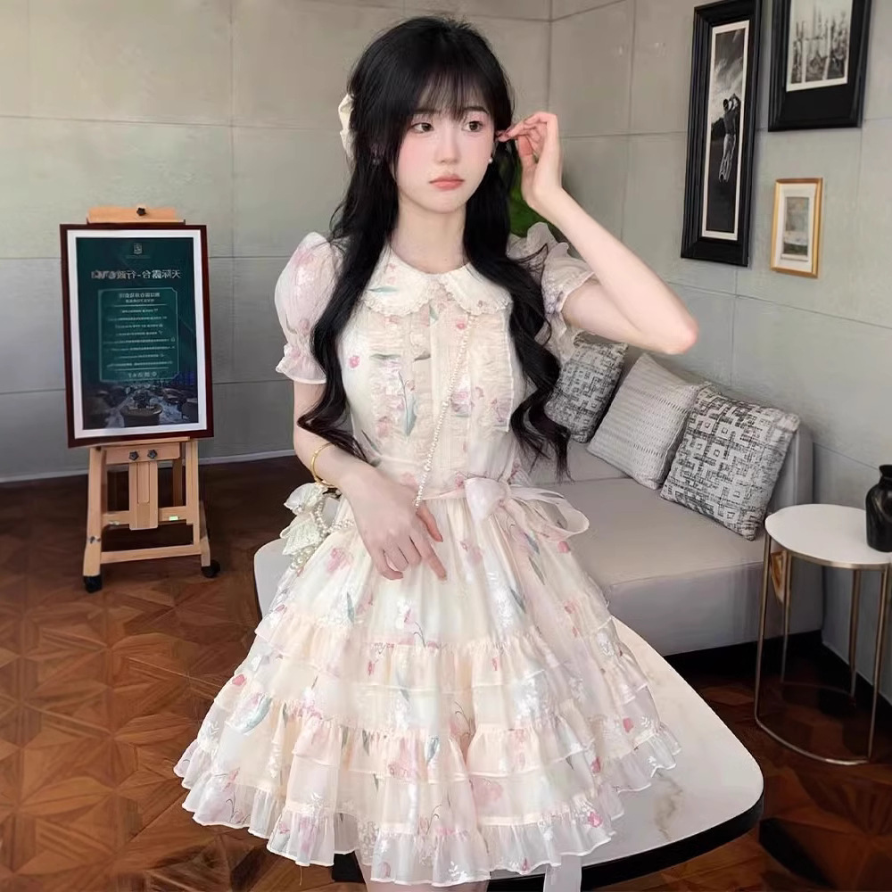 娃娃领碎花连衣裙女夏2025新款郁金香甜美公主裙温柔风绝美小裙子