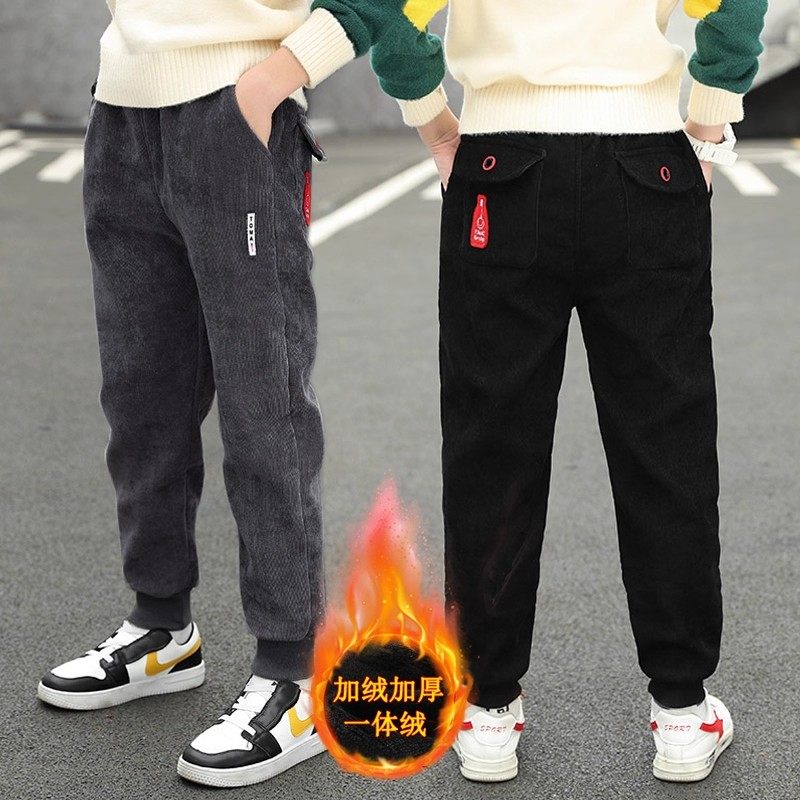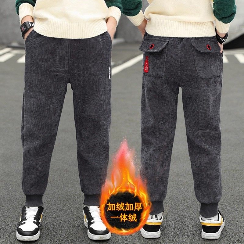 男童灯芯绒裤子秋冬加绒卫裤新款春秋季中大童加厚长裤儿童休闲裤