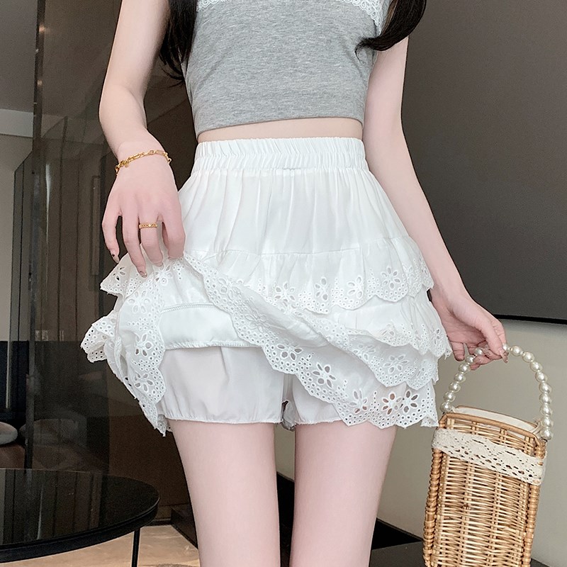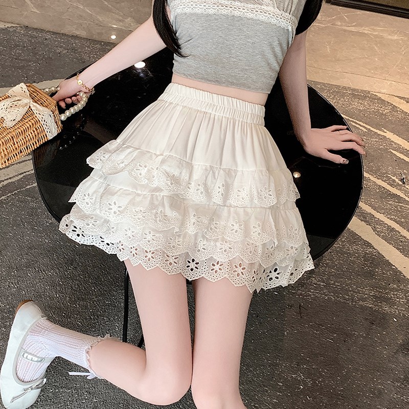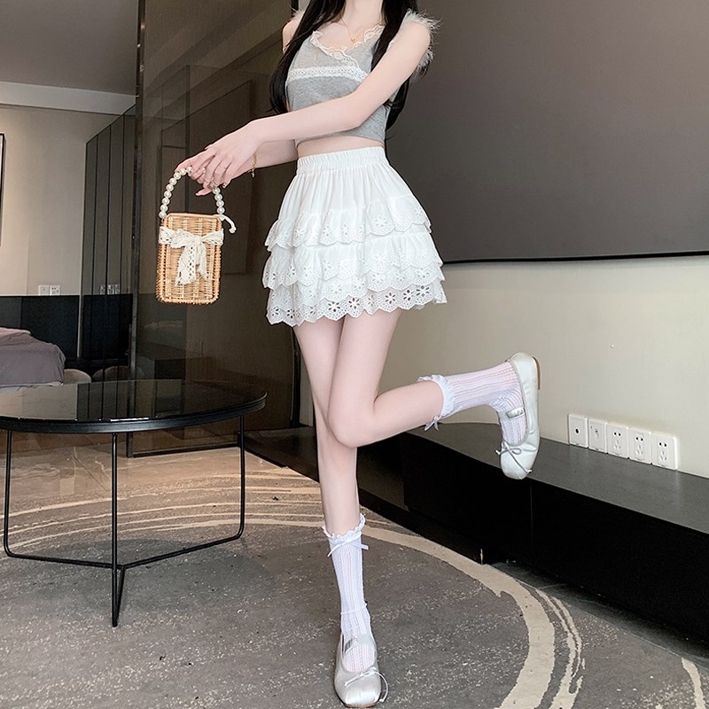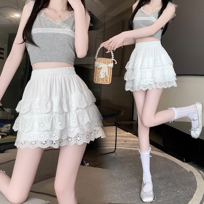 白色蓬蓬蛋糕e半身裙o女夏2024新款小个子高腰显瘦a字雪纺百褶短