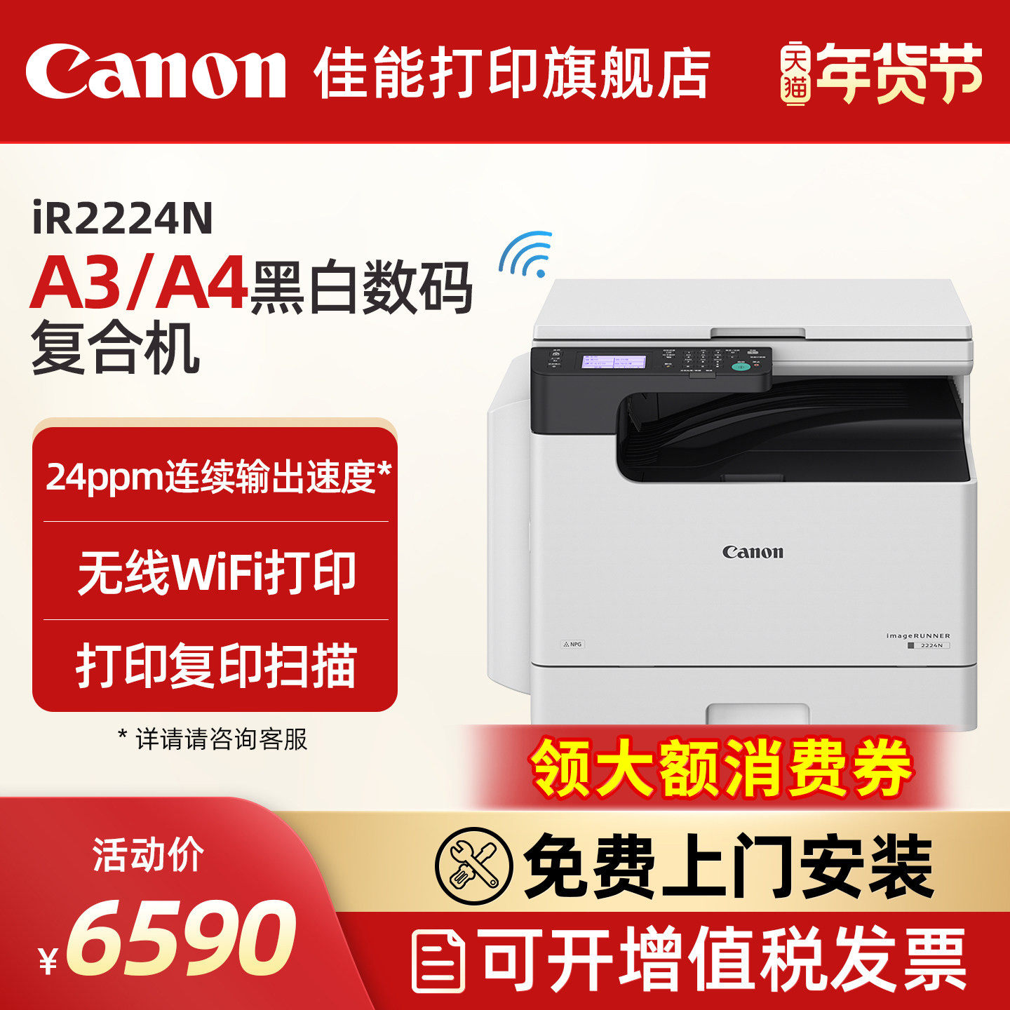 佳能IR2224L/2224N A3A4黑白激光数码复合机一体机打印复印扫描上门安装售后(2206L/2206N升级款)