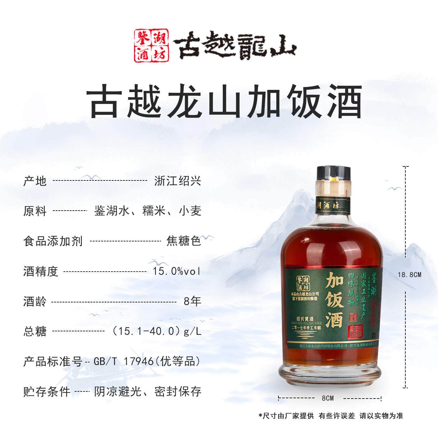 古越龙山绍兴黄酒鉴湖八年陈花雕酒加饭酒糯米冬酿甜型香雪善酿酒