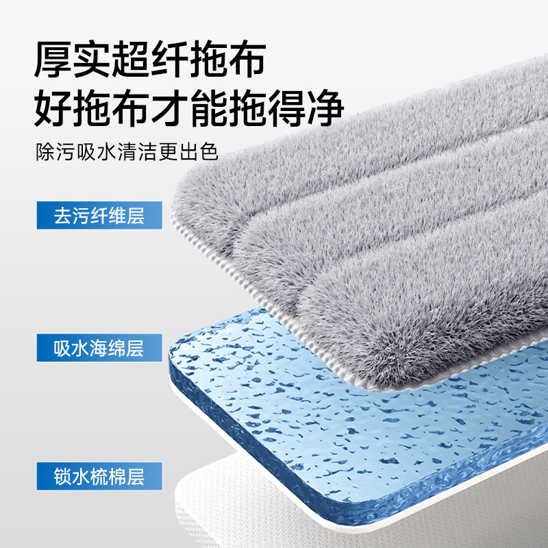 五月花家用干湿两用一拖净平板拖把超细纤维拖布不锈钢杆35cm拖头