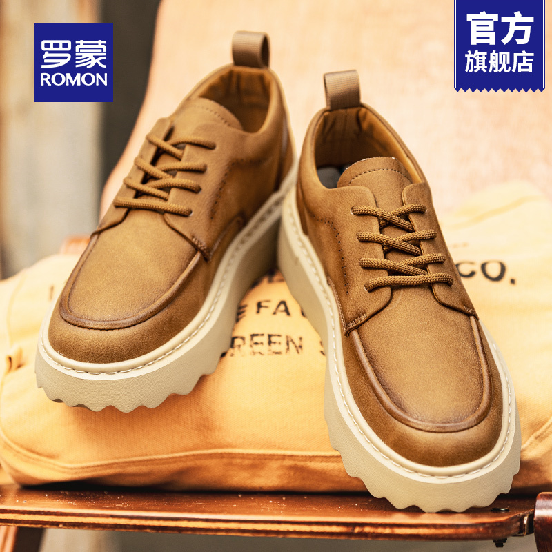 罗蒙休闲板鞋男款2025巨好看袋鼠鞋子男鞋新款冬季复古工装皮鞋RM